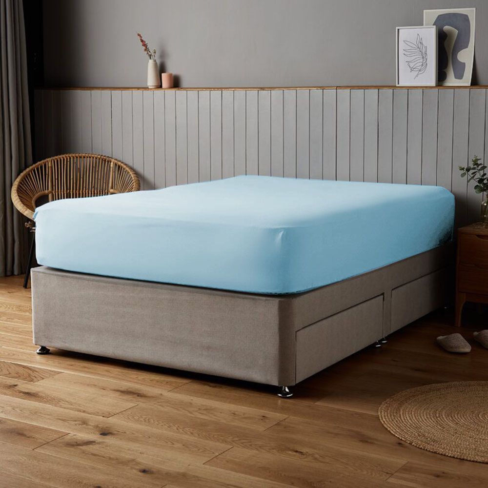 Cotton Home Fitted Sheet 100% Cotton 120X200+25cm -Sky Blue