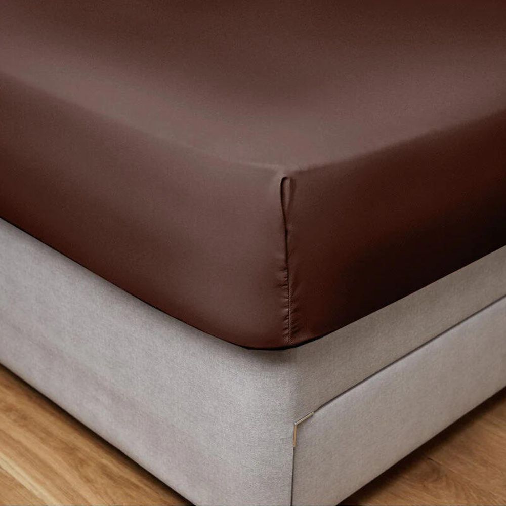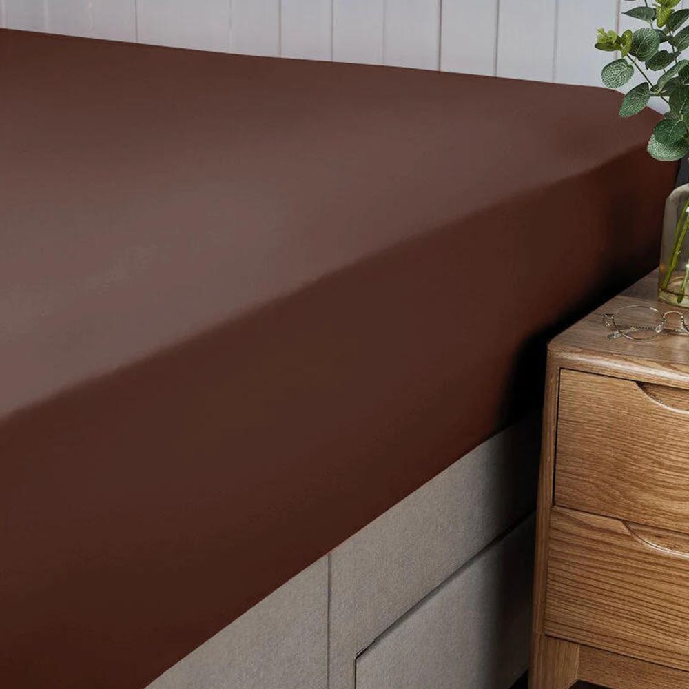 Cotton Home Fitted Sheet 100% Cotton 160X200+30cm Chocolate Brown