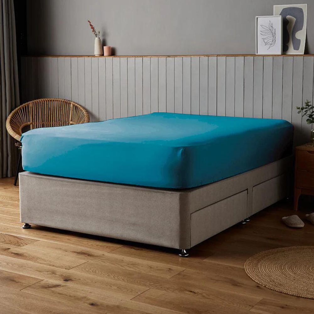 Cotton Home Fitted Sheet 100% Cotton 160X200+30cm -Turquise