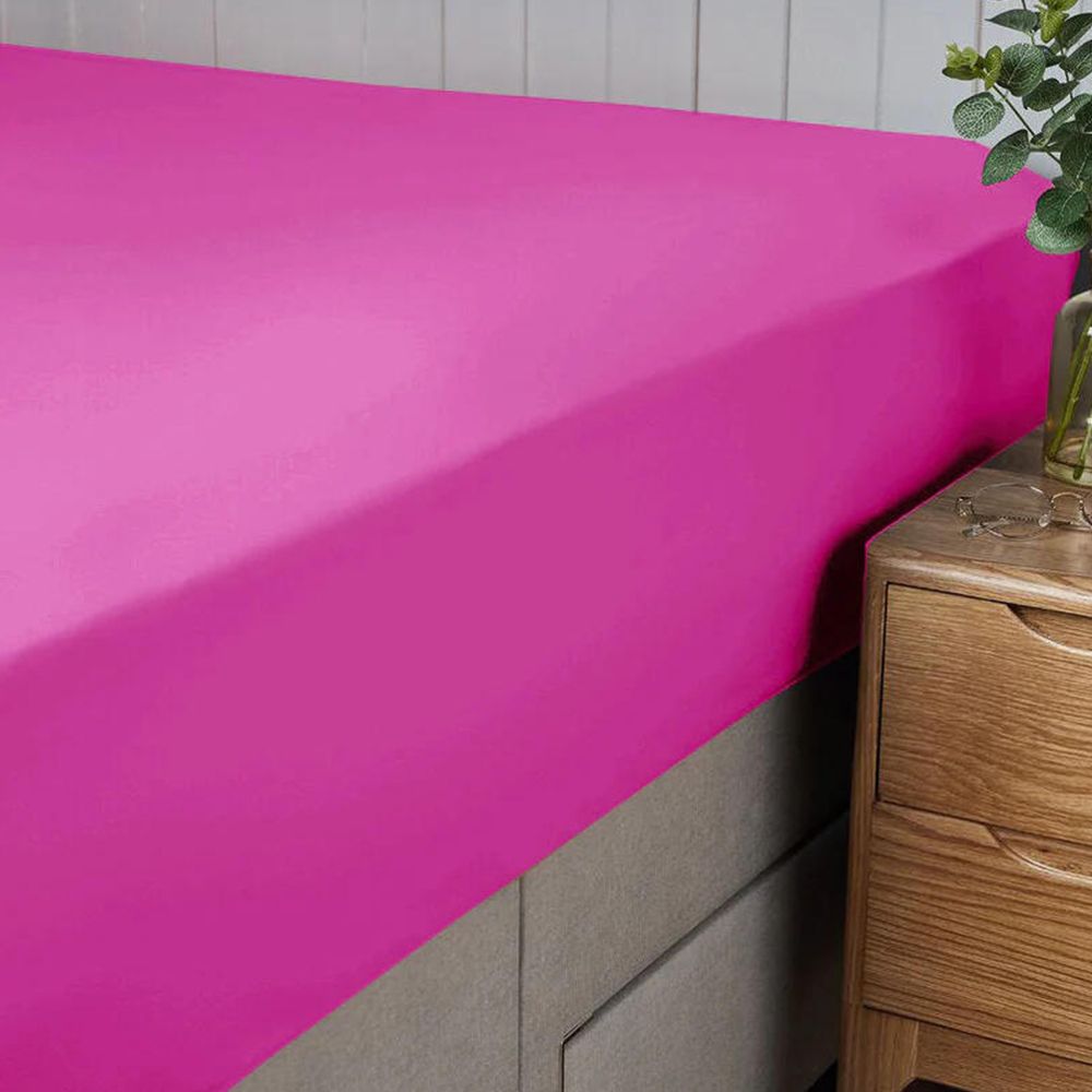 Cotton Home Fitted Sheet 100% Cotton 180X200+30cm - Fuscia