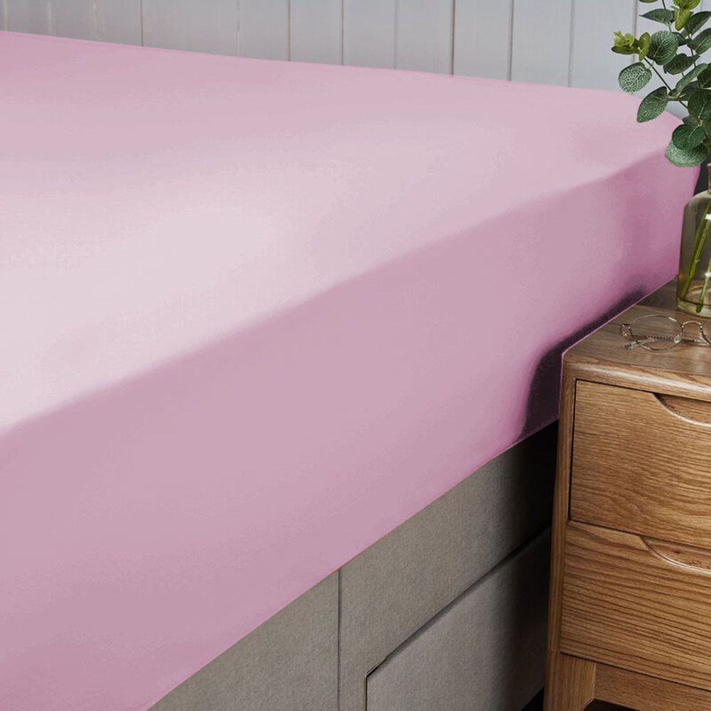 Cotton Home Fitted Sheet 100% Cotton 200X200+30cm - Baby Pink