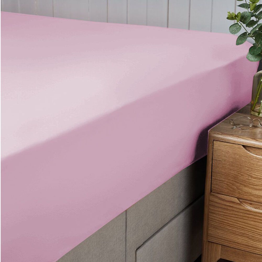 Cotton Home Fitted Sheet 100% Cotton 90X190+20cm - Baby Pink