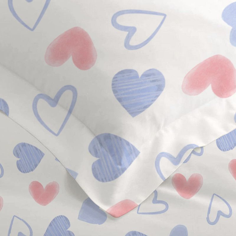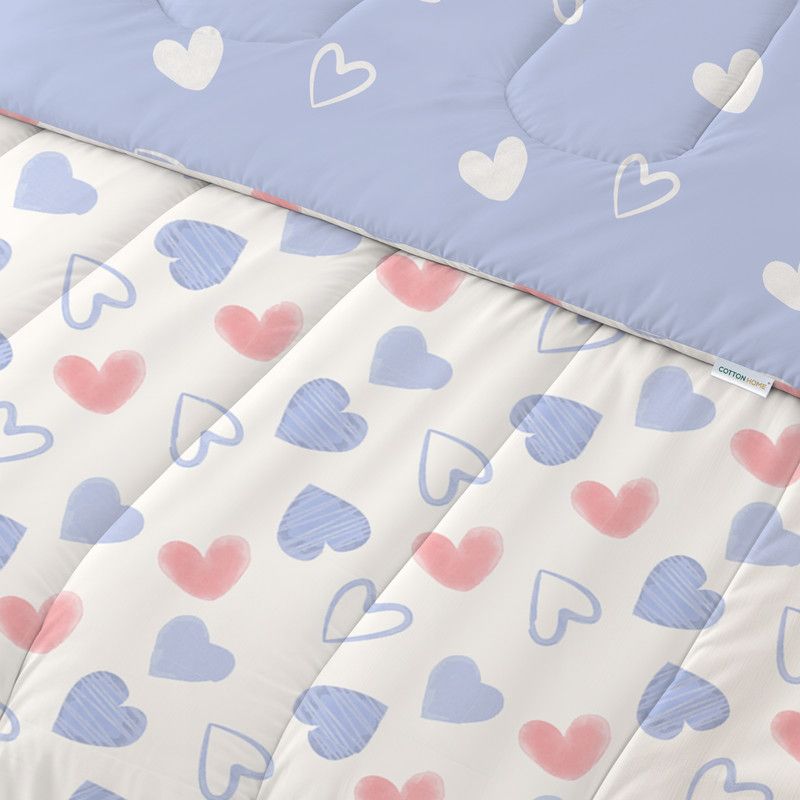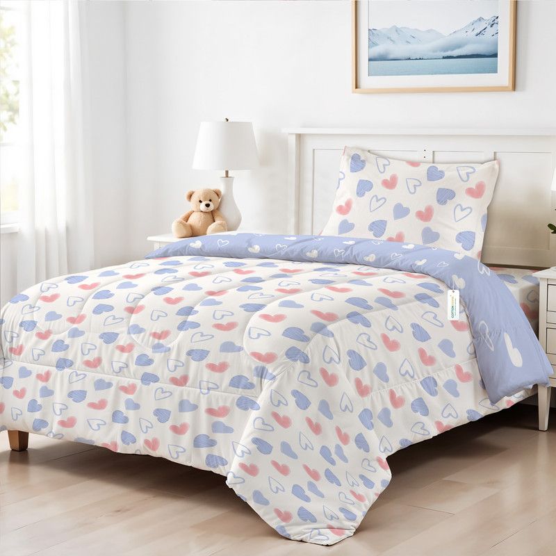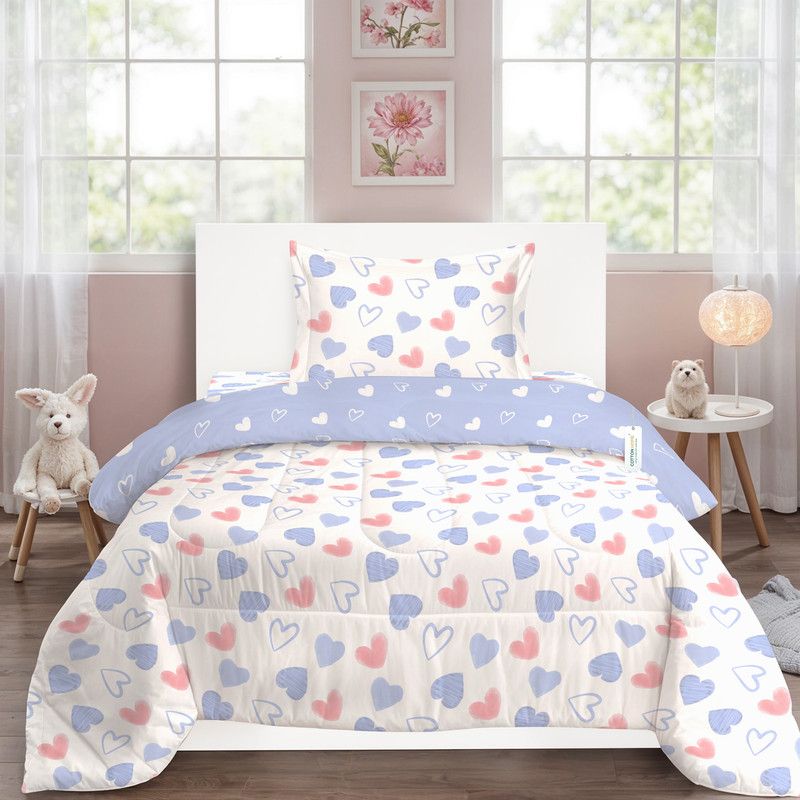 Cotton Home Premium Cotton 3PC Kids Comforter Set includes , 1PC Comforter 135x220cm ,1PC Fitted Sheet 90x200cm, and 1PC Pillowsham 50x75+5cm 50x75+5cm , Hue Hearts