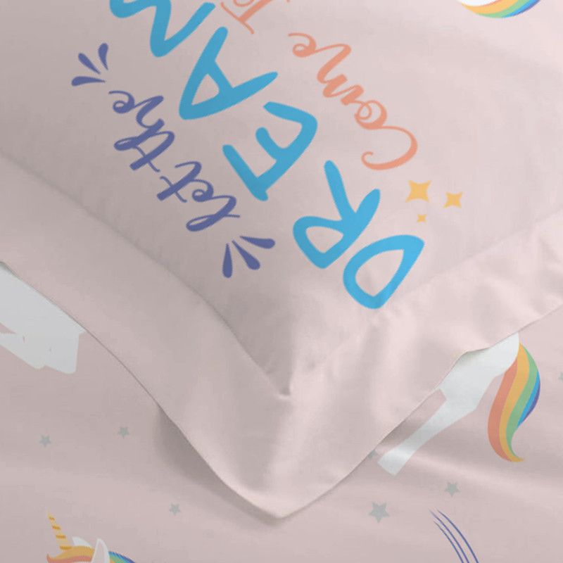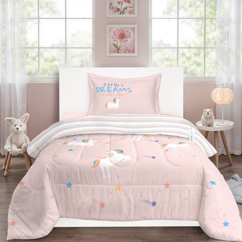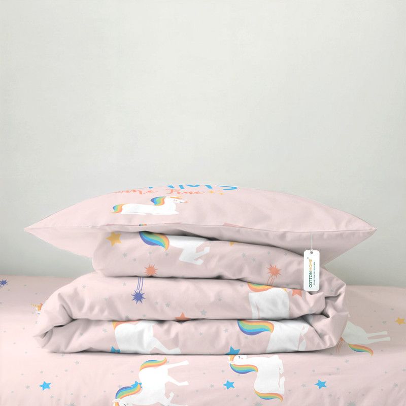 Cotton Home Premium Cotton 3PC Kids Comforter Set Includes 1PC Comforter 135x220cm ,1PC Fitted Sheet 90x200cm, and 1PC Pillowsham 50x75+5cm , Unicorn