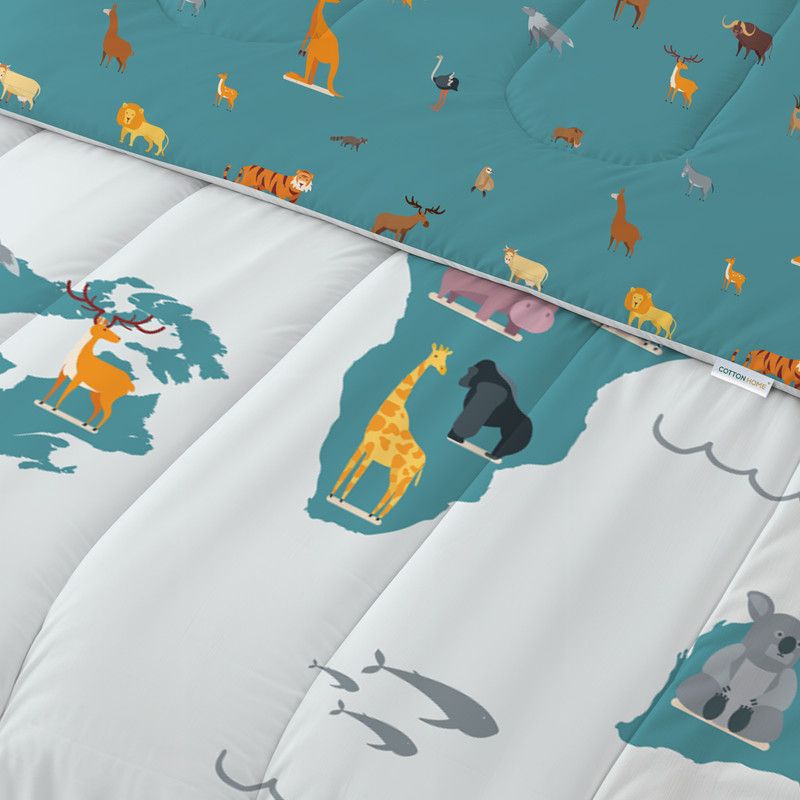 Cotton Home Premium Cotton 3PC KidsComforter Set includes , 1PC Comforter 135x220cm ,1PC Fitted Sheet 90x200cm, and 1PC Pillowsham 50x75+5cm 50x75+5cm , Adventure Atlas