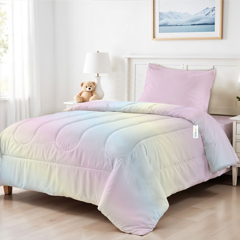 Cotton Home Premium Cotton 4PC Adult Comforter Set Includes 1PC Comforter 160x220cm ,1 Fitted Sheet 120x200cm, and 2 Pillowsham 50x75+5cm , Gradient Glow