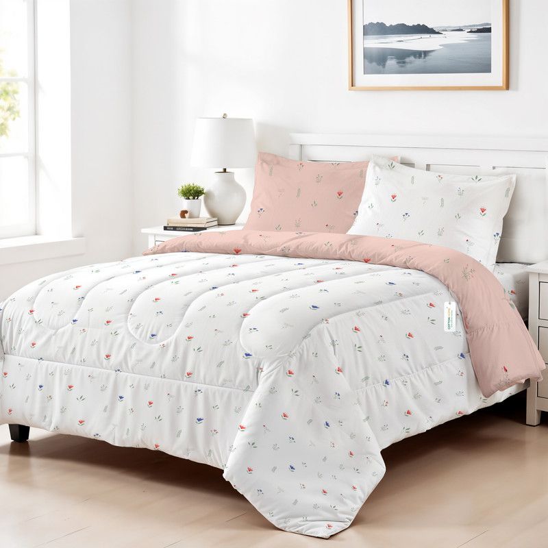 Cotton Home Premium Cotton 4PC Adult Comforter Set Includes 1PC Comforter 160x220cm ,1 Fitted Sheet 120x200cm, and 2 Pillowsham 50x75+5cm , Peach Blossom