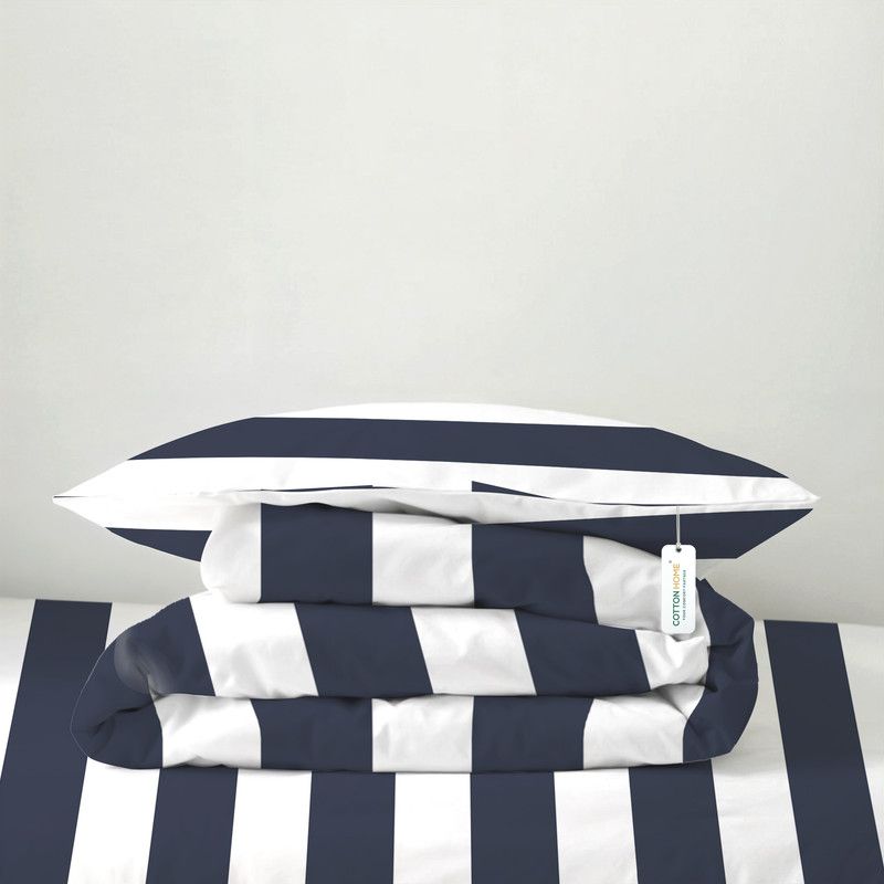 Cotton Home Premium Cotton 4PC Adult Comforter Set Includes 1PC Comforter 160x220cm ,1 Fitted Sheet 120x200cm, and 2 Pillowsham 50x75+5cm , Sailor Stripe