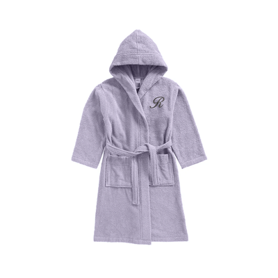 Daffodil Monogrammed Kids Bathrobe (120x124 Cm) 10 Year Lilac Hooded Terry Cotton Set of 01 - Letter "R"