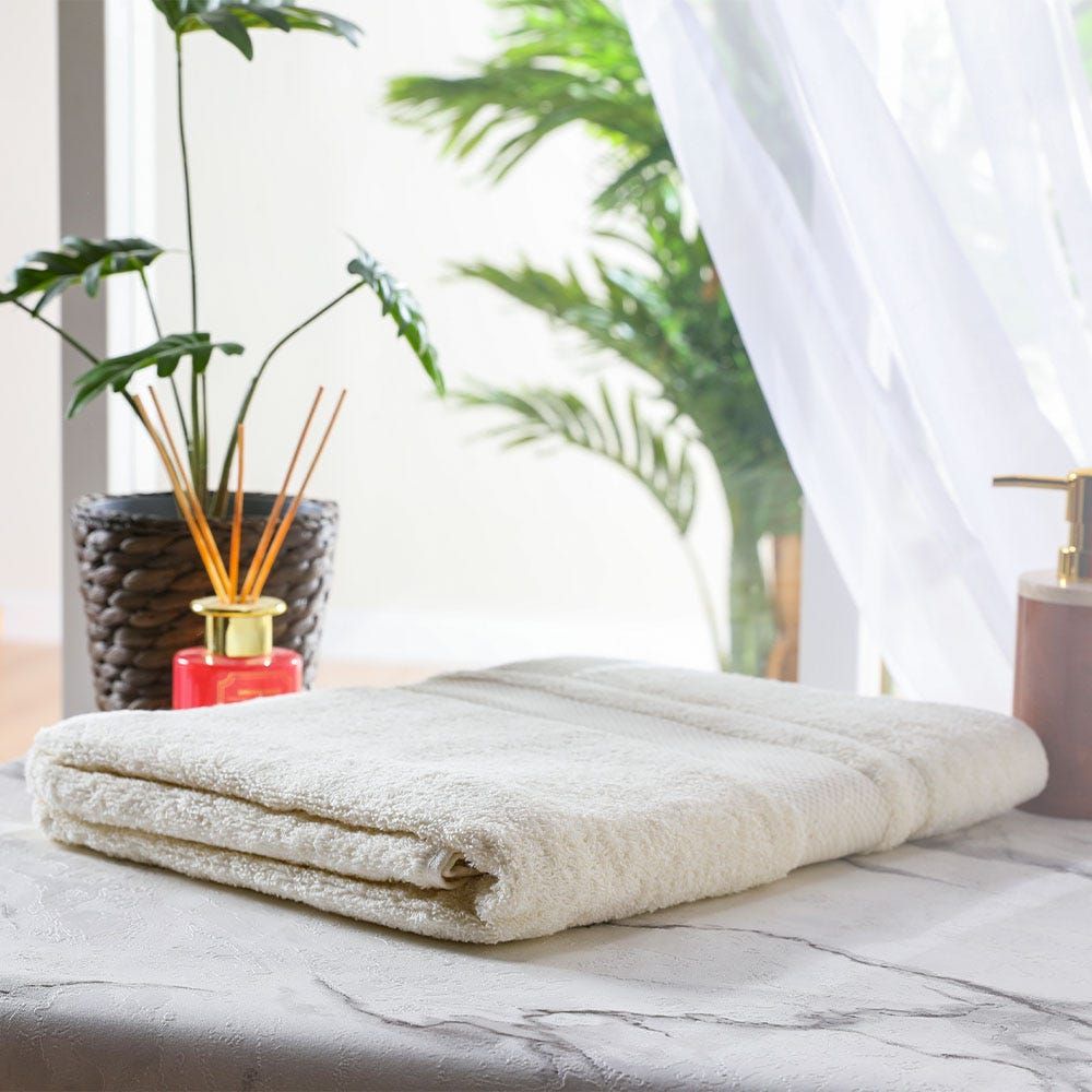 The product Derby Bath Sheet 160x90 Cm Off White images have props used for illustrative purposes. Product Color may vary slightly due to photographic lighting or your screen settings.