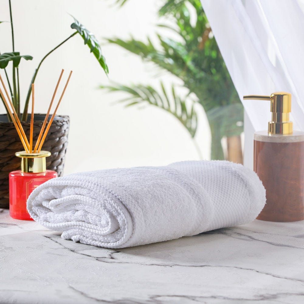The product Derby Bath Towel 140x70 Cm White images have props used for illustrative purposes. Product Color may vary slightly due to photographic lighting or your screen settings.