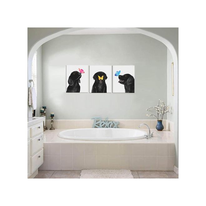 Dog Animal Wall Art For Nursery Room Butterfly On Dog Nose Kids Bed Room Wall Decor 3 Panel Black And White Puppy Prints Picture For Pet Shop 12"X16"X3 Pcs