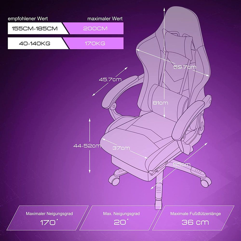 FOR NOT ONLY GAMER: The trustworthy wingback provides multi-contact for releasing your lumbar pressure while your spine is also well protected by the neck pillow. Plus, the retractable footrest and the re-designed soft wing frame further upgrade your sitting experience..