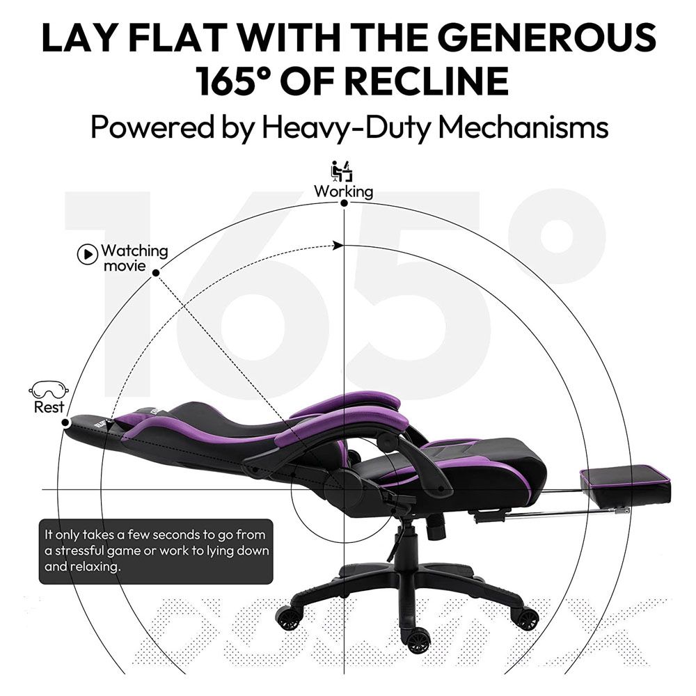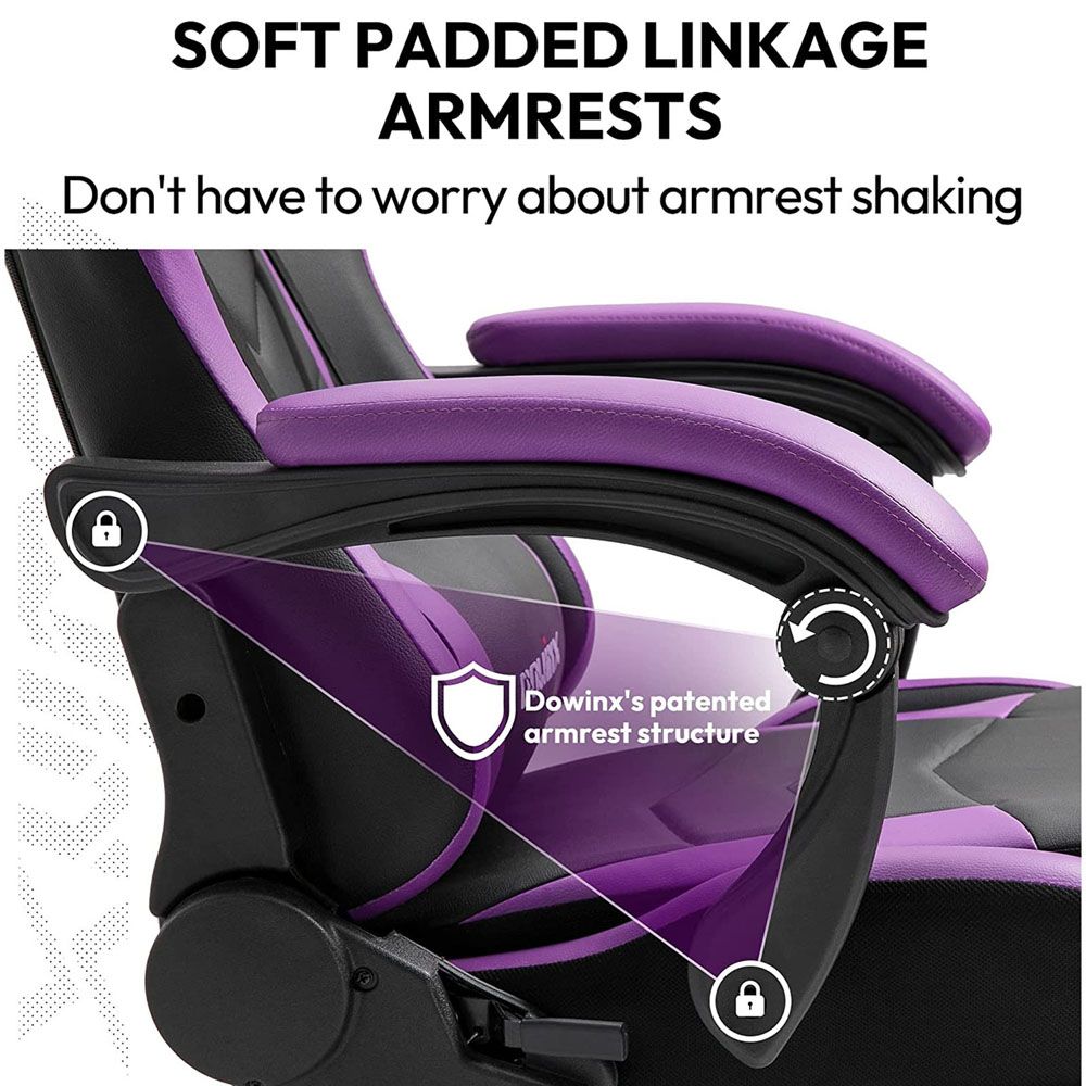 Dowinx Gaming Chair Ergonomic Racing Style Recliner with Massage Lumbar Support, Office Armchair for Computer PU Leather E-Sports Gamer Chairs with Retractable Footrest (Black&Purple)
