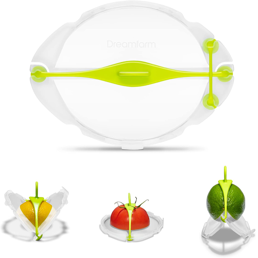 Dreamfarm Savel, Flexible Plastic Fruit & Vegetable Storage Cover, Food Safe, Reusable Plastic Saver for Cut Produce, Clear & Green - SA6711