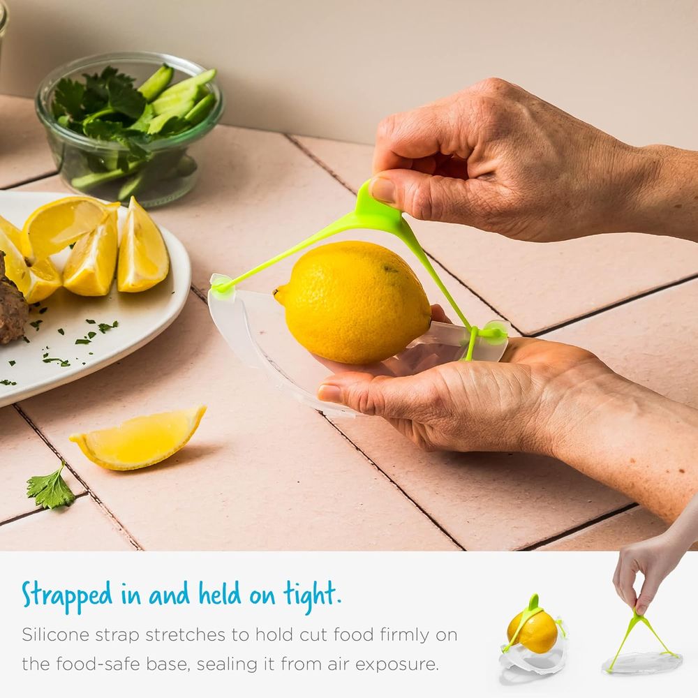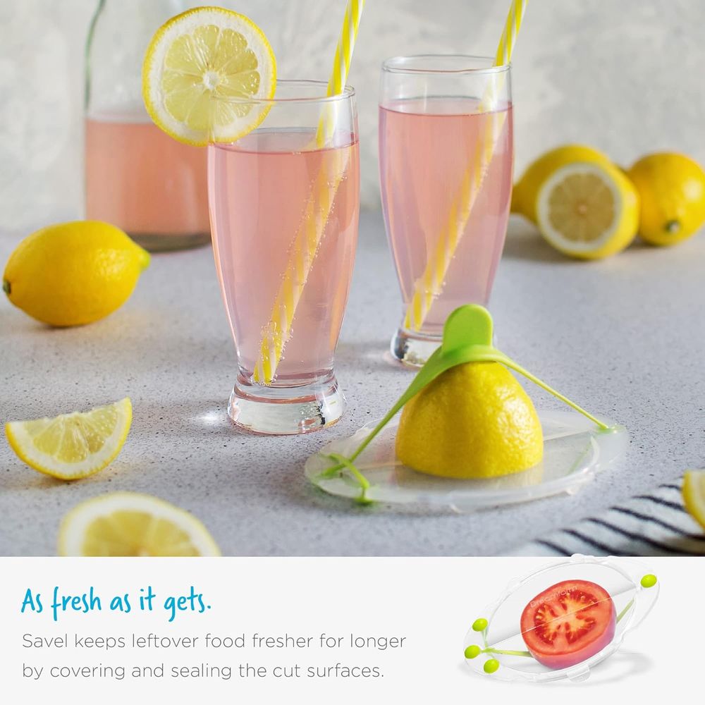 GOT THIS COVERED The Savel is a flexible food saver to keep your unused fruit and veggie pieces fresh. When life gives you lemons, you can cut one in half and save the rest for later!