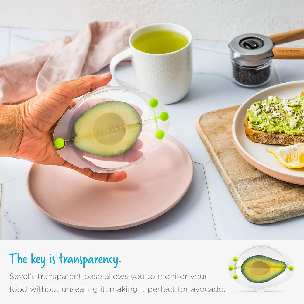 Made from durable, BPA-free plastic, the Savel is completely food safe and flexible, making it simple to adjust for a wide range of fruit and vegetable shapes. Its smart design reduces air exposure, slows down browning, and helps preserve flavor and texture. The clear base and green lid allow you to see your stored produce at a glance while adding a modern, eco-friendly touch to your kitchen.