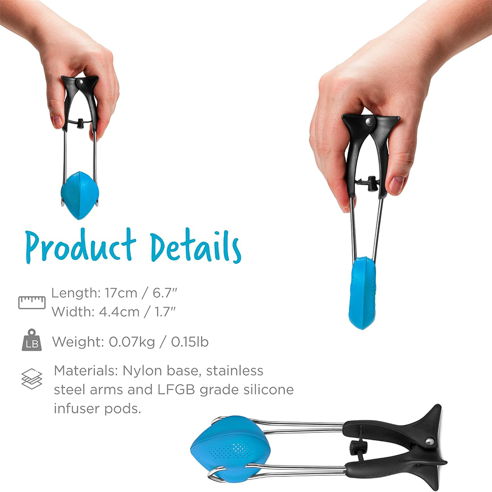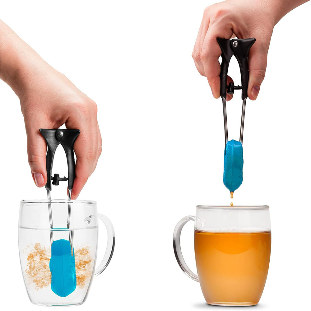BREWTIFUL DESIGN: Have a spot of tea with a spotless counter. Squeezing the ergonomic tea tongs also strains any last drops of liquid. Flip the Teafu over and use the built-in stand to rest it vertically with no mess. It’s heat-resistant to 500°F.