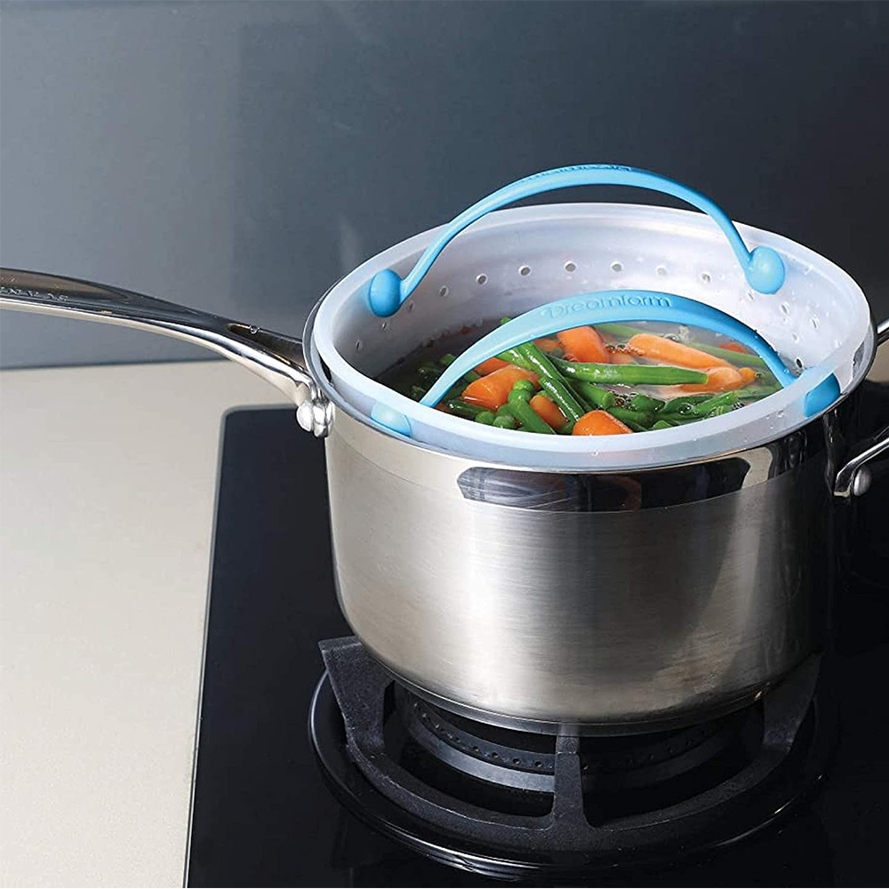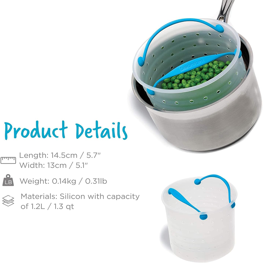Dreamfarm Vebo, Silicone Vegetable Steamer, Strainer & Basket, Flexible, Heat-Resistant, Collapsible Cooking Tool for Boiling, Steaming & Draining – Dishwasher Safe, Blue 5-Inch - DFM-VE6018