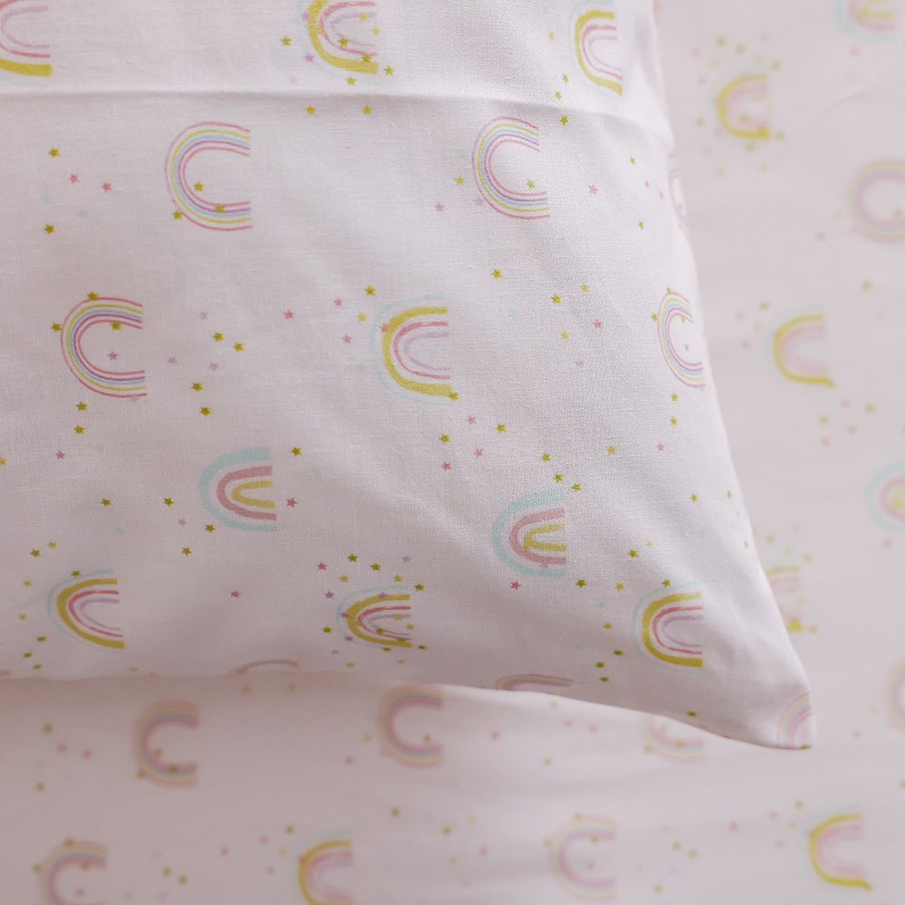 Dreamz Rainbow Cotton Digital Printed Fitted Sheet With 1 Pillow Case-120x200+25 cm