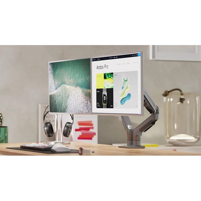 The NB-F160B Dual Monitor Arm is engineered to support two monitors ranging from 17” to 27”, accommodating a weight of 9kg/19.8 lbs per arm. Designed for flexibility and ergonomics, this monitor arm enhances your workspace by allowing optimal screen placement. It is compatible with standard VESA mount sizes of 75x75mm and 100x100mm, ensuring broad compatibility with most monitor brands. With various adjustment features including tilt, swivel, and rotation, this mount enhances comfort and visibility, making it perfect for multi-monitor setups.
