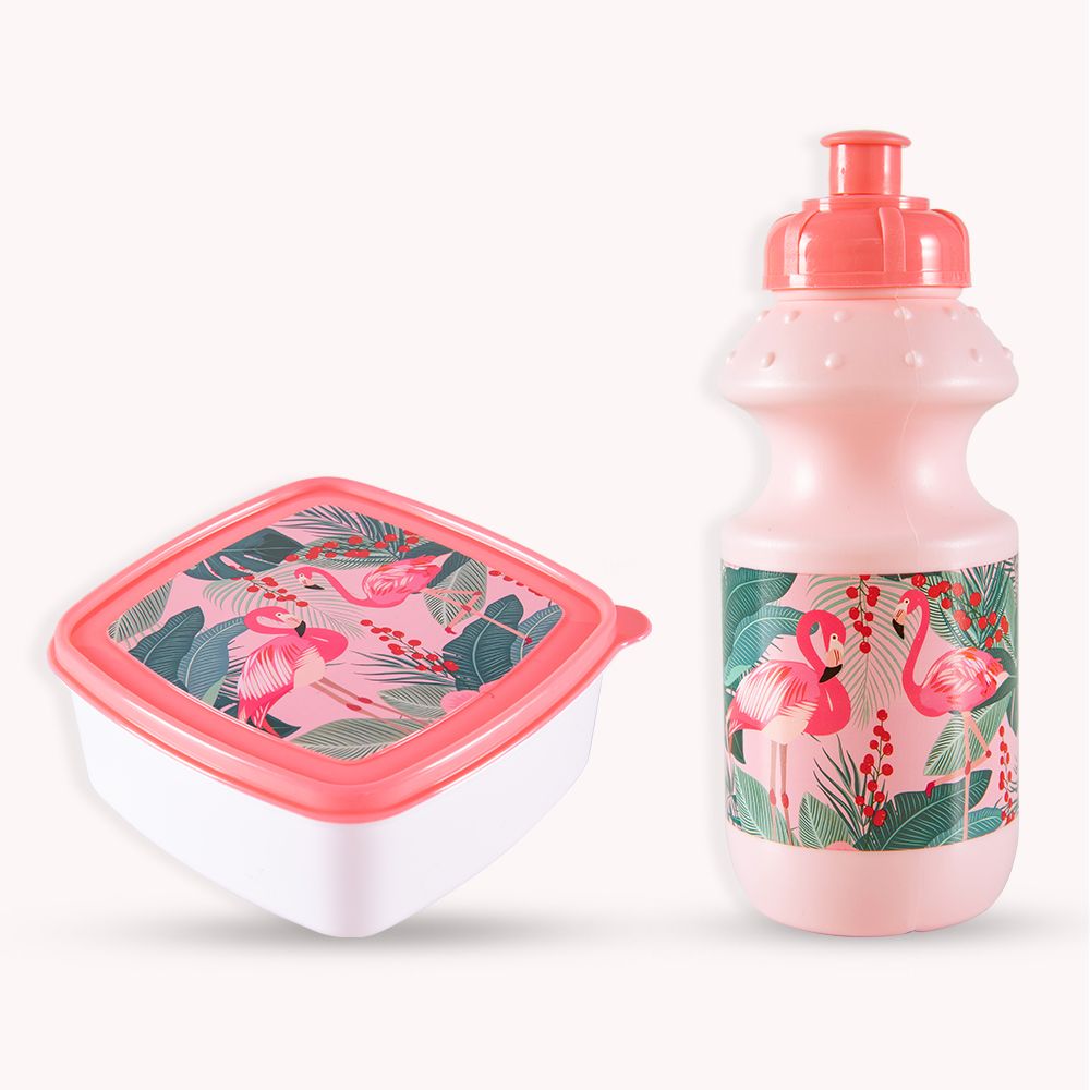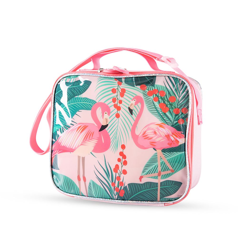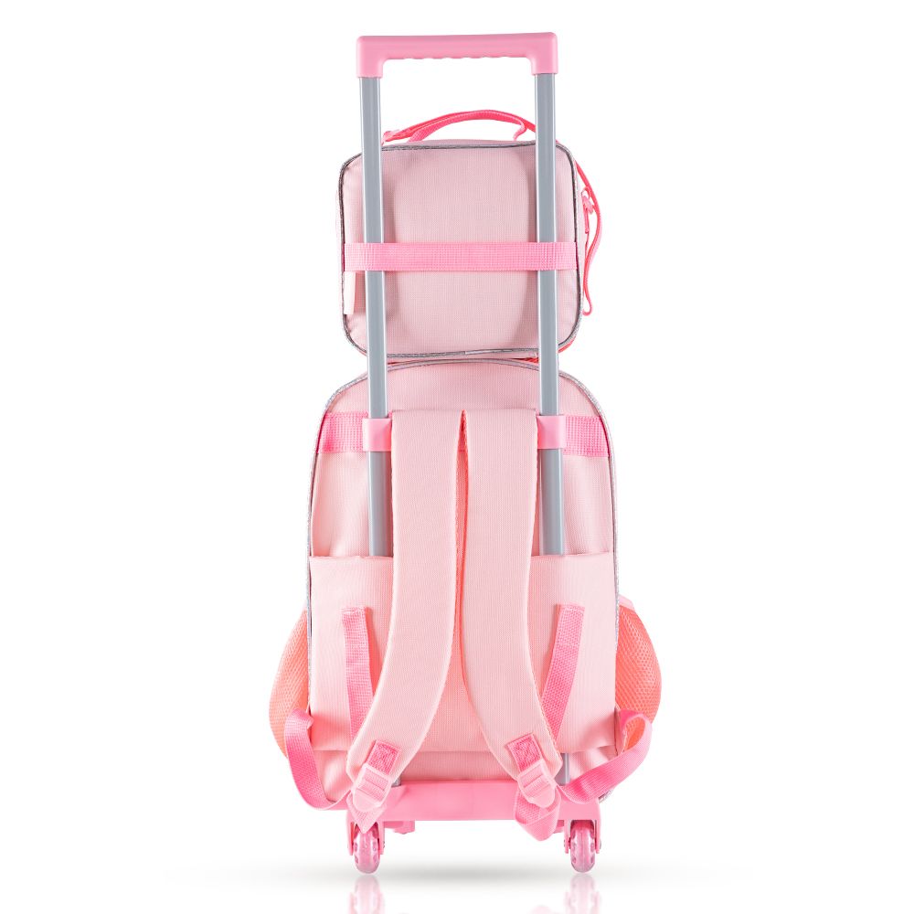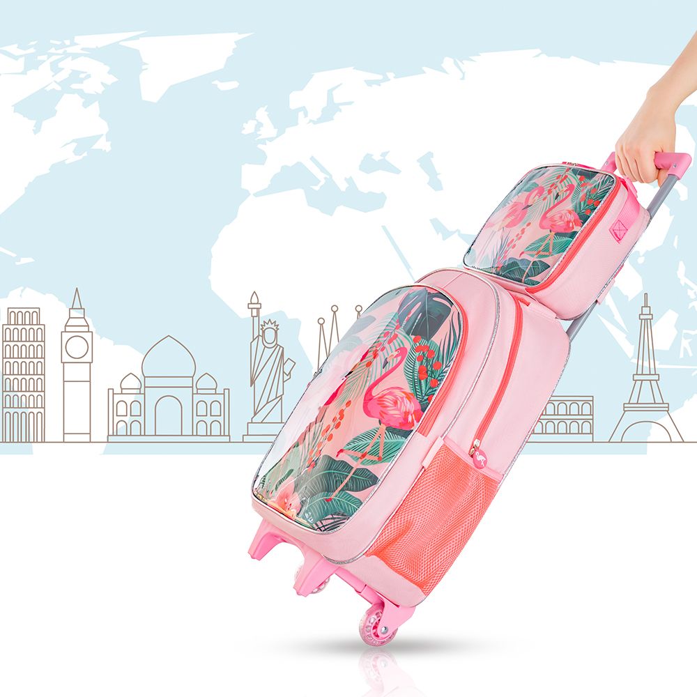 Eazy Kids 17Inch Set of 5 Trolley School Bag with Lunch Bag, Pencil Case, Lunch Box and Water Bottle Tropical - Pink