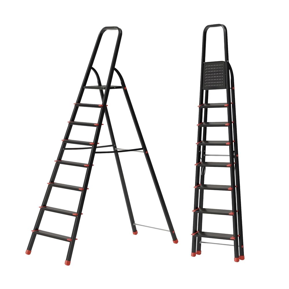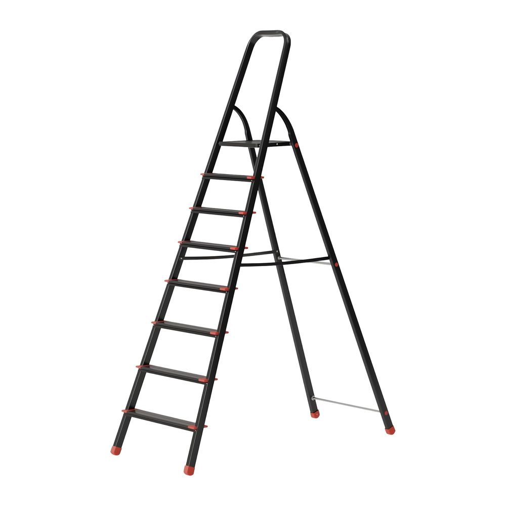 Aluminium Step Ladder for Home - 8 Steps, Black | Anti-Slip Foldable Ladder for Home, Kitchen, Garden, Office | Lightweight, Portable Folding Ladder with Grip (Black)