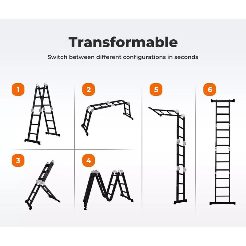 FLEXIBLE & ADJUSTABLE: Easily adjust the ladder to different heights and configurations, making it perfect for use in the kitchen, garage, workshop, or any space that requires flexibility.