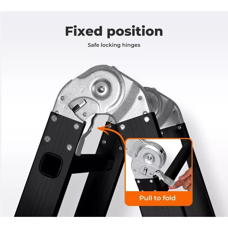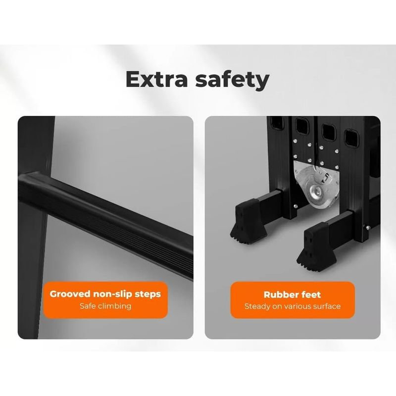 ENHANCED SAFETY: Equipped with rubber feet and non-slip rungs, this ladder ensures stable footing and reduces the risk of accidents. Always check the lock before use for extra peace of mind.