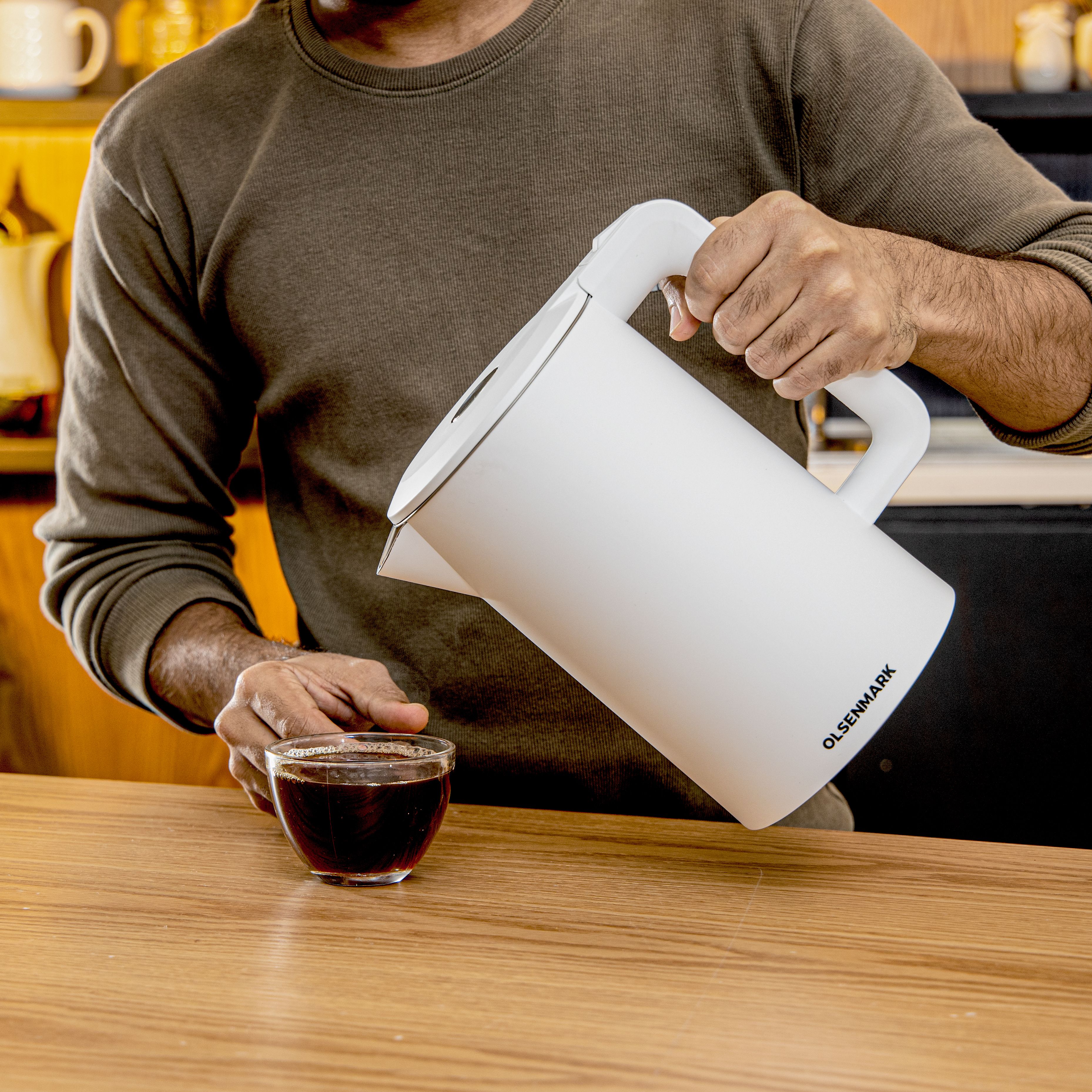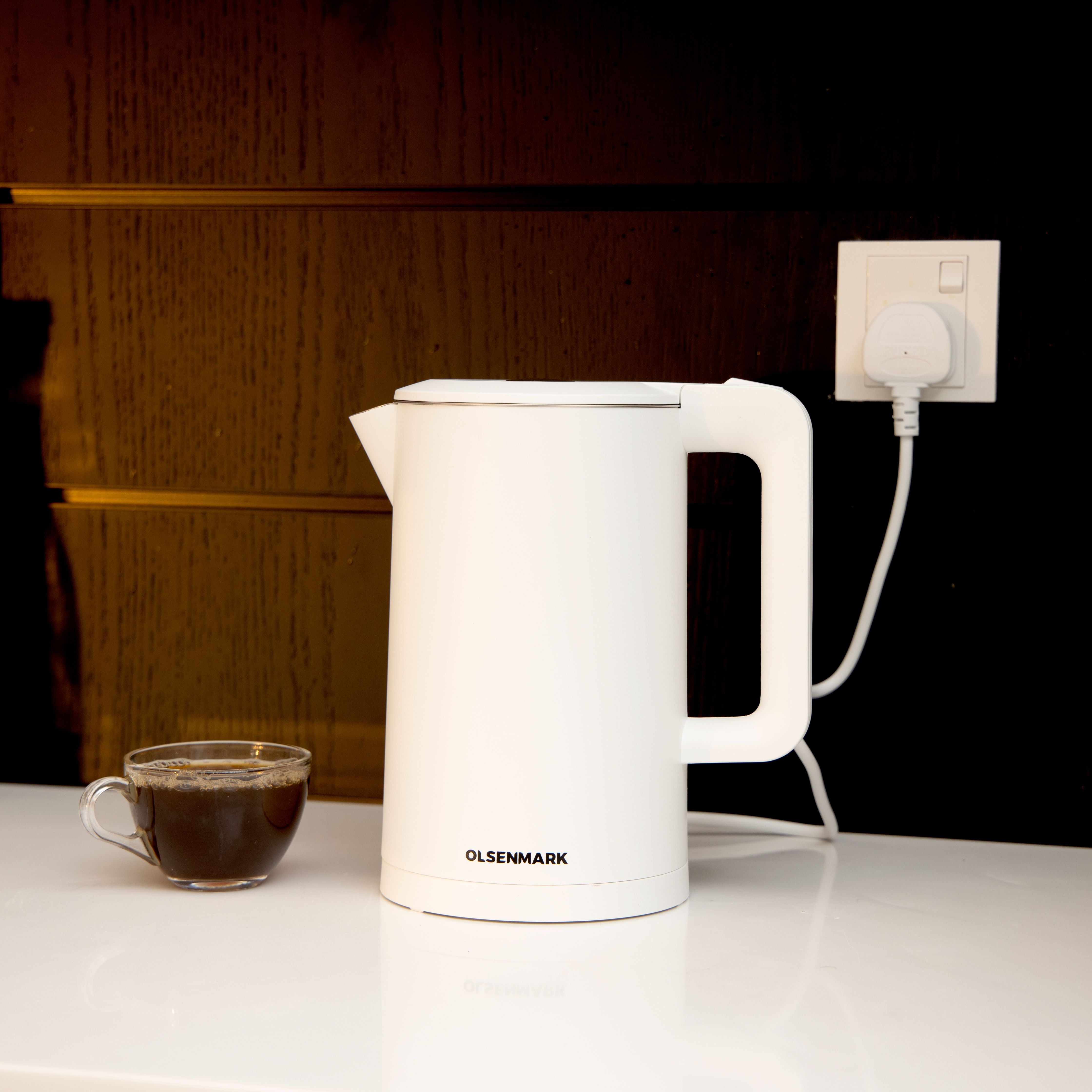 The Olsenmark Electric Kettle is a perfect blend of style, efficiency, and safety, making it an essential addition to any kitchen. With a generous capacity of 1.8 liters, this kettle is designed to cater to the needs of families and gatherings, allowing you to brew multiple servings of your favorite hot beverages in one go. The kettle features a sleek stainless steel body that not only enhances its aesthetic appeal but also ensures durability and resistance to rust and stains. One of the standout features is the concealed heating element, which promotes safety and makes cleaning a breeze. The kettle is equipped with boil-dry protection, automatically shutting off when there is no water inside, preventing potential damage. Additionally, it boasts a powerful 1500W heating element, ensuring rapid boiling times for your convenience. The automatic shut-off feature activates once the water reaches boiling point, providing peace of mind during use. With its user-friendly design and safety features, the Olsenmark Electric Kettle is the ideal choice for anyone looking to enjoy hot beverages quickly and safely.'