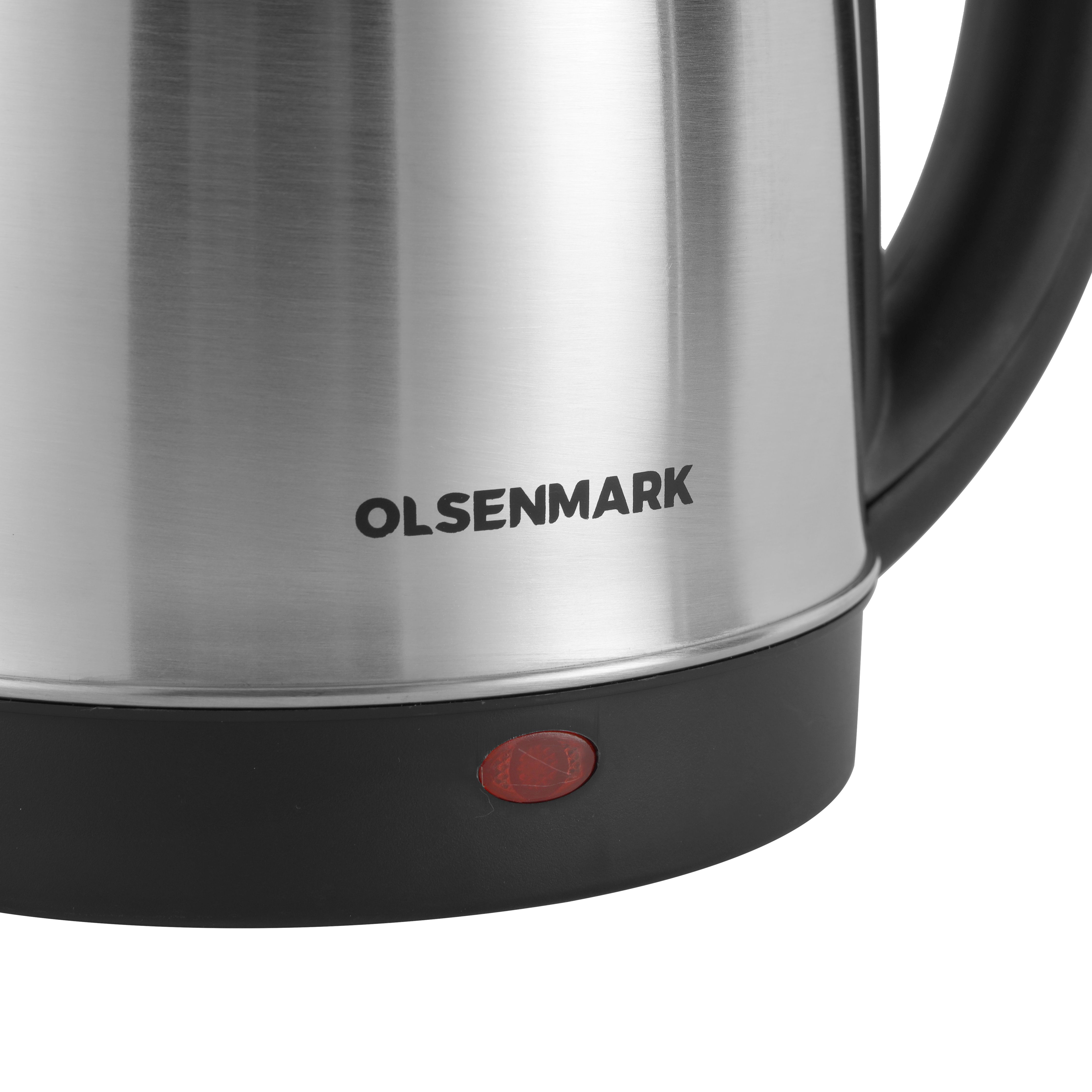 Electric Stainless Steel Kettle, Concealed Heating Elements, Stainless Steel Housing, Over Heating Safety Protection Dry Boil Resistance Auto Power Cut Off 1.8 L 1500 W OMK2233 silver and black