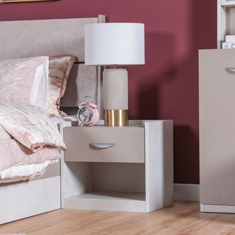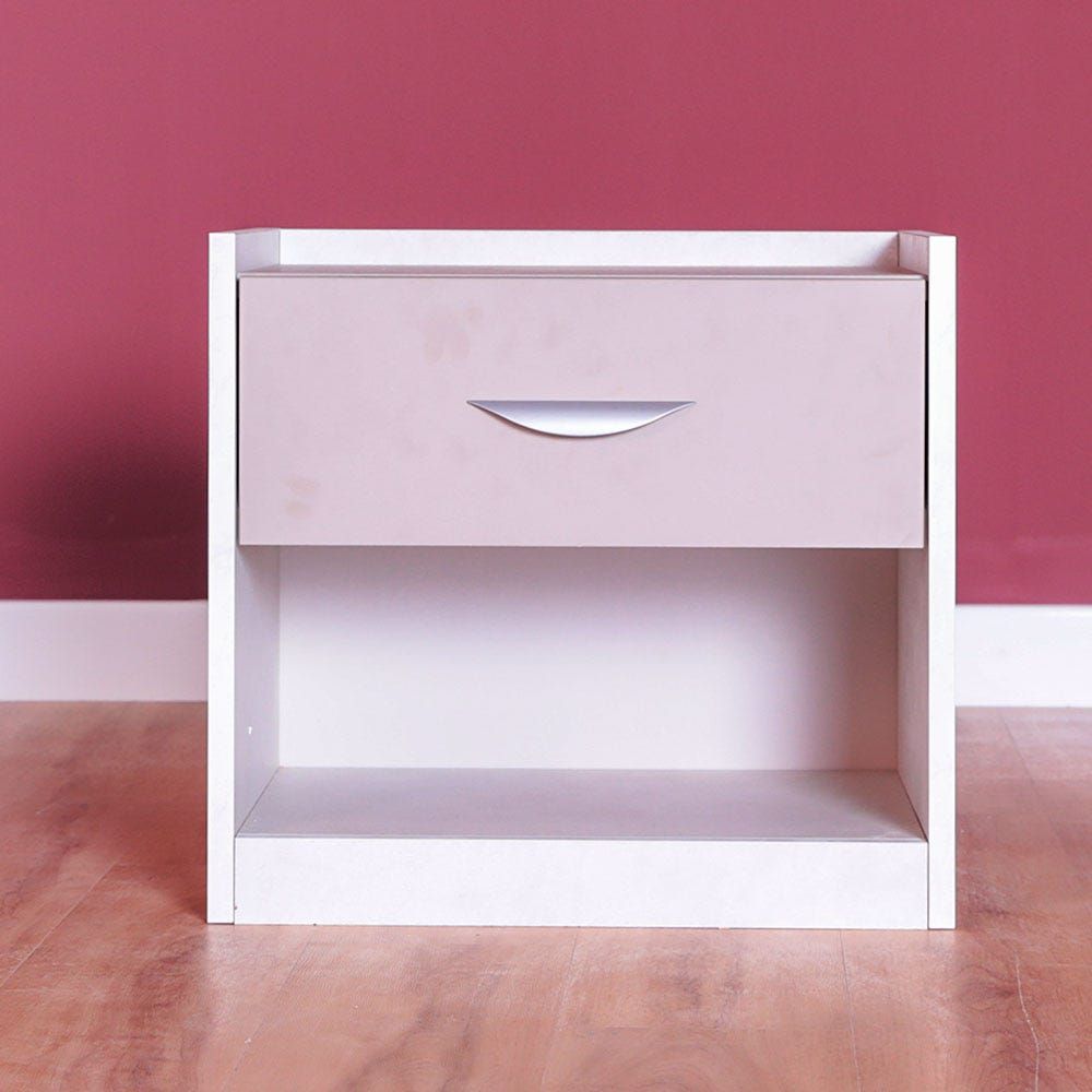 A single drawer night stand comes with the set for keeping display piece and storing items