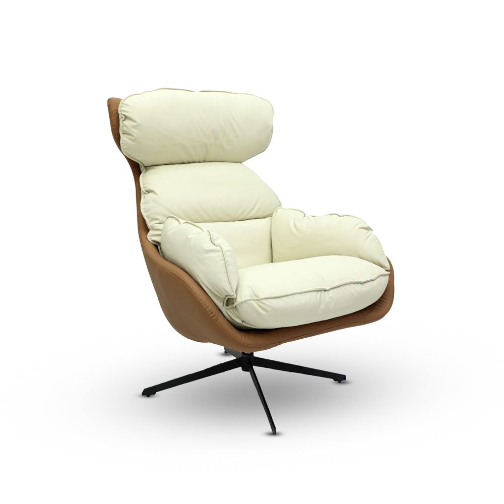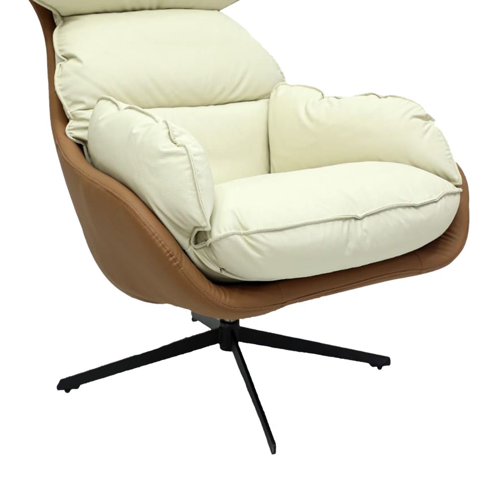 Empire Furniture Modern Swivel Lounge Chair, High Back Recliner, Cream and Brown Leather, Ergonomic Design