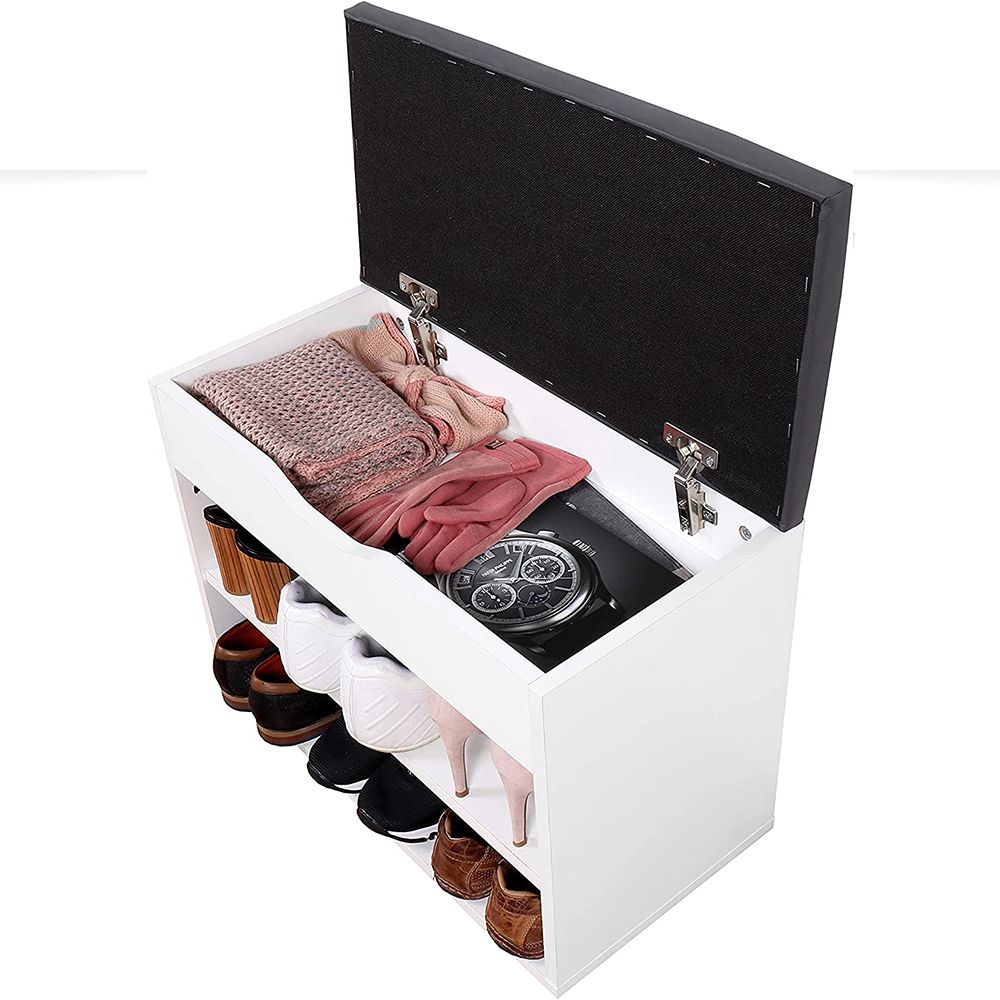 A multifunctional storage unit is designed in a modern style with a sponge seat for easy change and a place to store socks and accessories and important items.