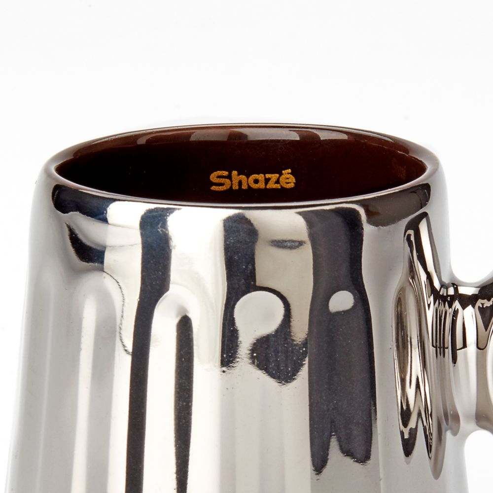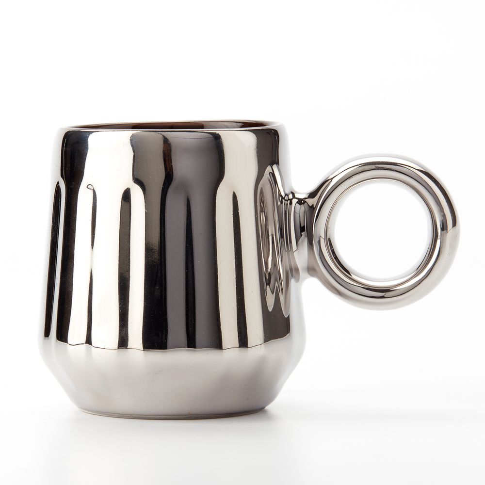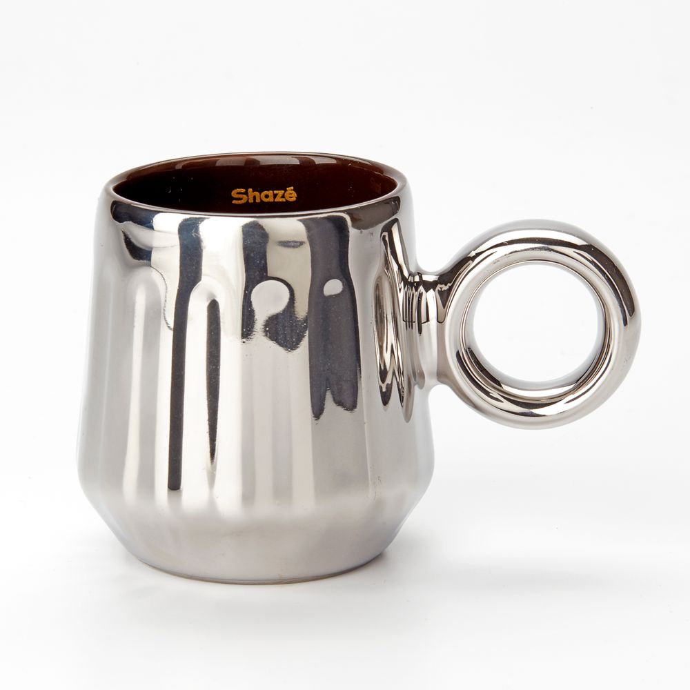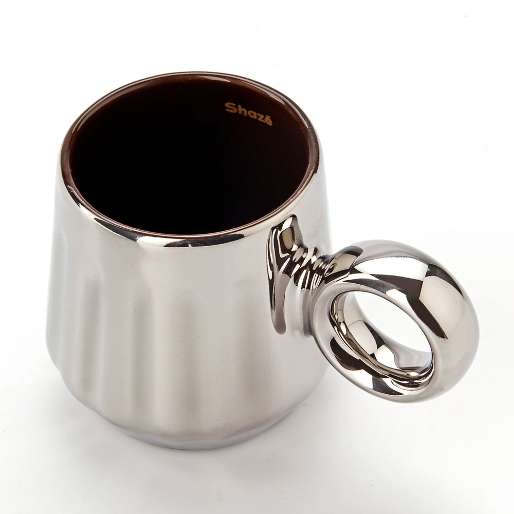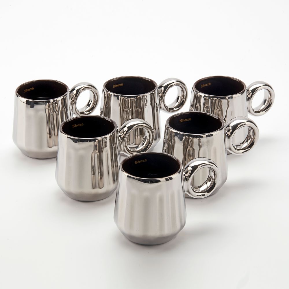 6 Pieces Of Small Cups Stoneware Which Is Glazed For Color And Finish, Chrome Plated