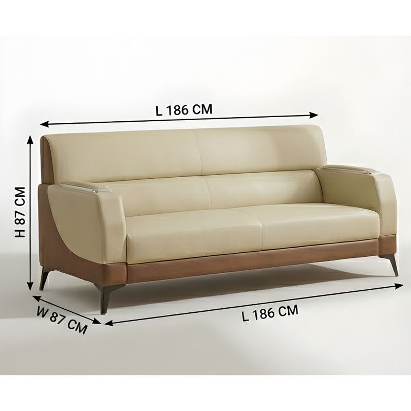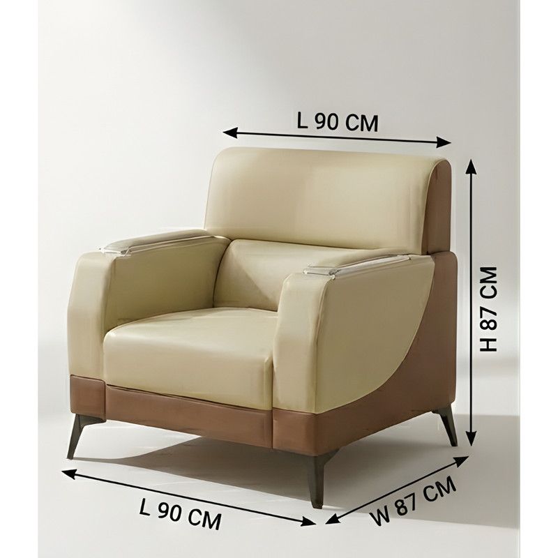 EUREKA 3+1+1 Sofa Set – 5-Seater Faux Leather Sofa for Living Room & Office | Modern Office Sofa Set Beige-Coffee