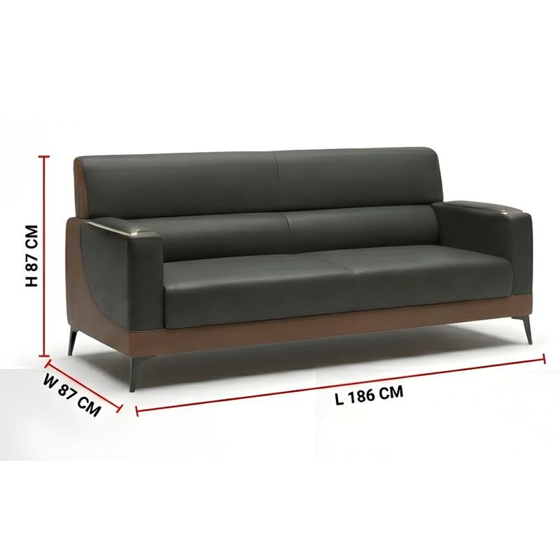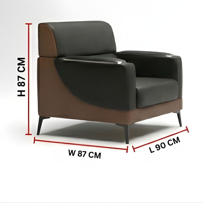 EUREKA 3+1+1 Sofa Set – 5-Seater Faux Leather Sofa for Living Room & Office | Modern Office Sofa Set Black-Brown