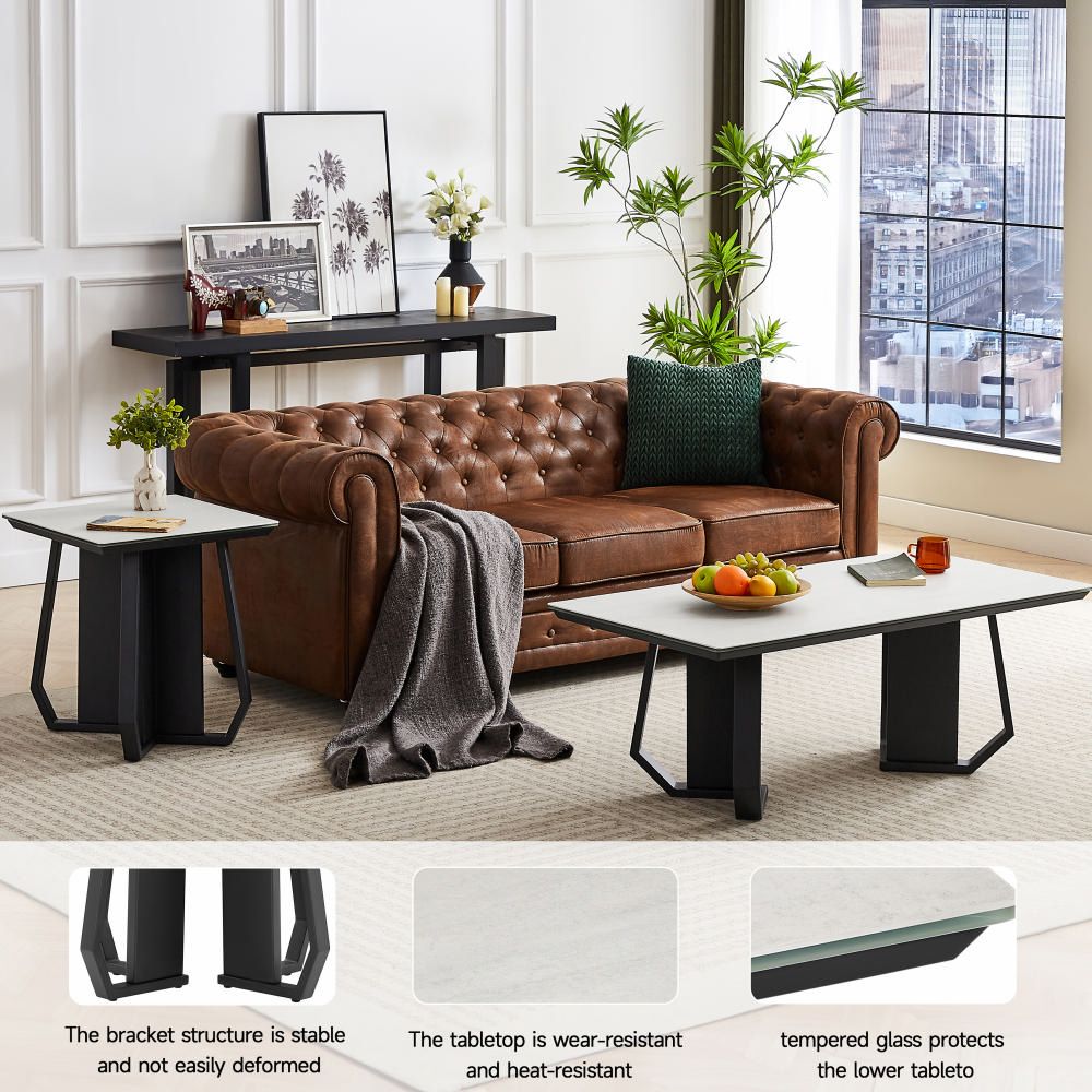 Everson Stone Top Coffee Table -Matt Beige/Black
