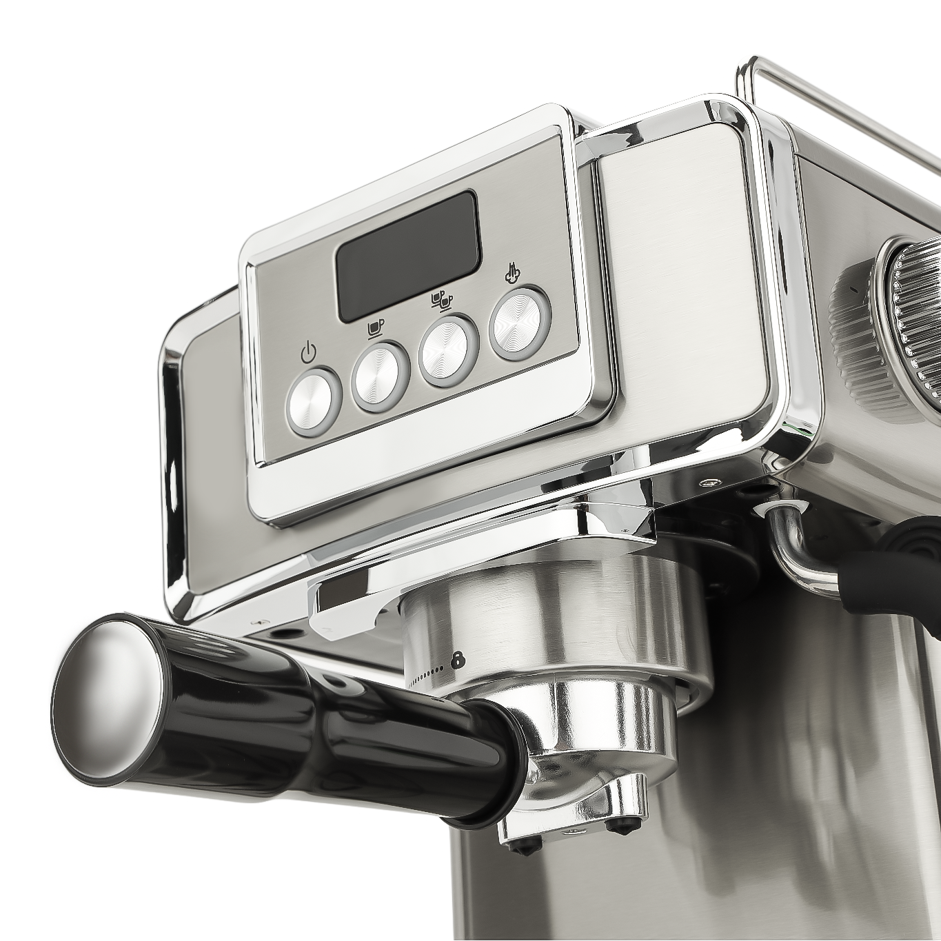With a 51-mm aluminum filter holder, a robust stainless steel plate for warming your coffee cups, and a stainless steel body, the Geepas espresso coffee maker is built to last.