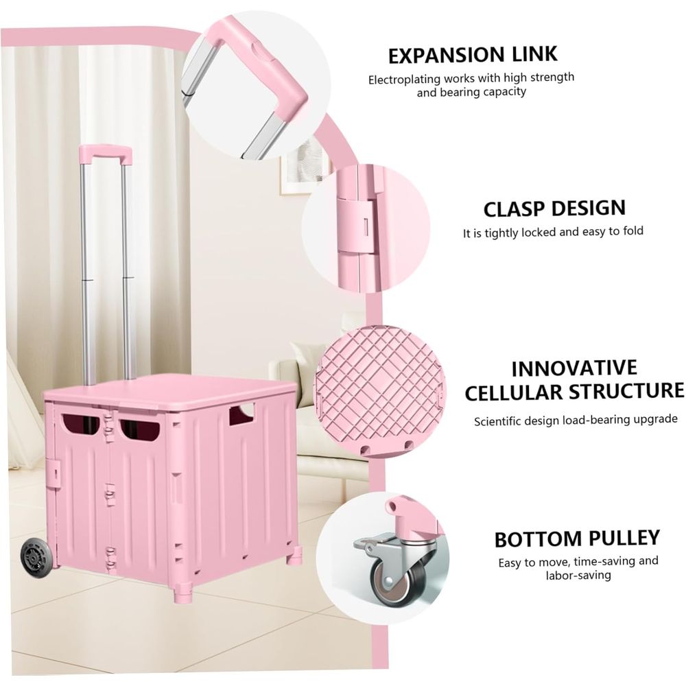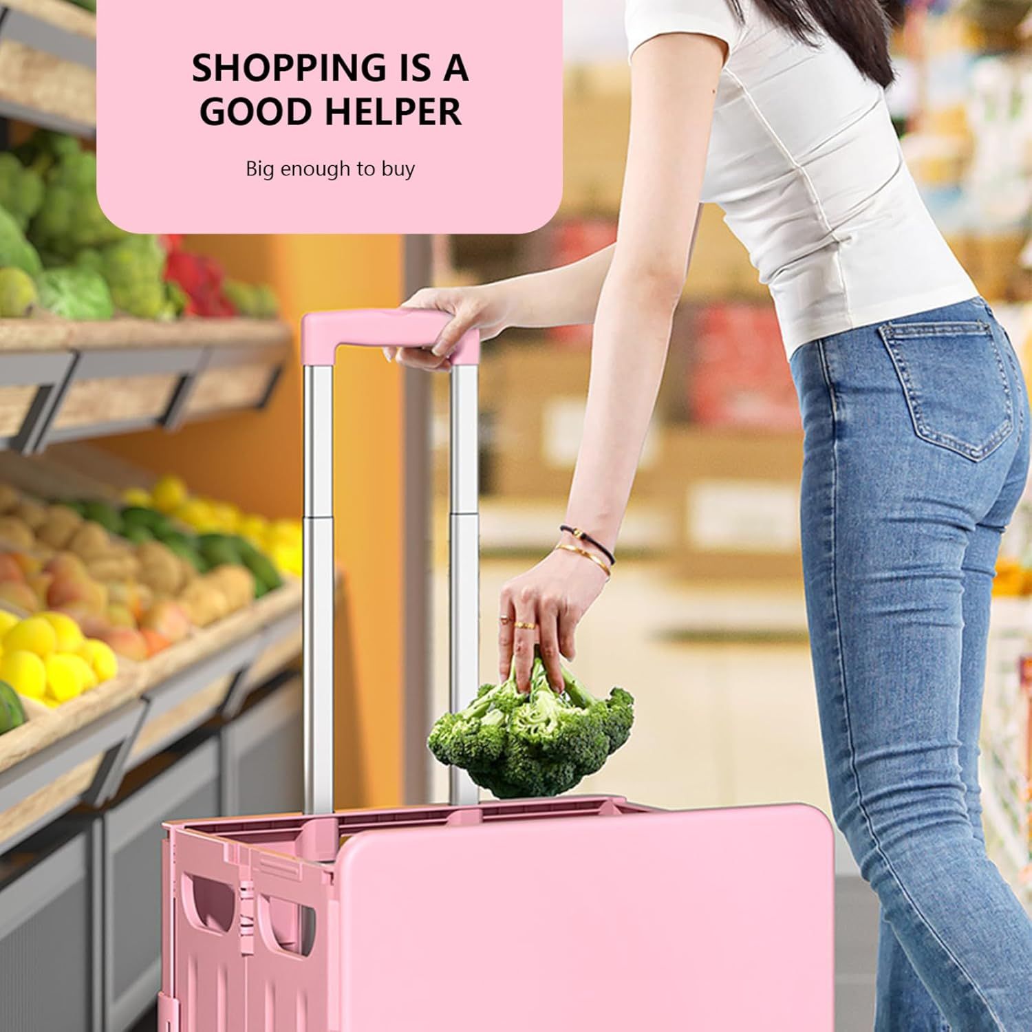 Foldable Shopping Trolley on Wheels - Heavy Duty Cart with Lid, 3-Height Adjustable, Portable Storage Solution for Camping, Shopping, Moving & Outdoor Activities