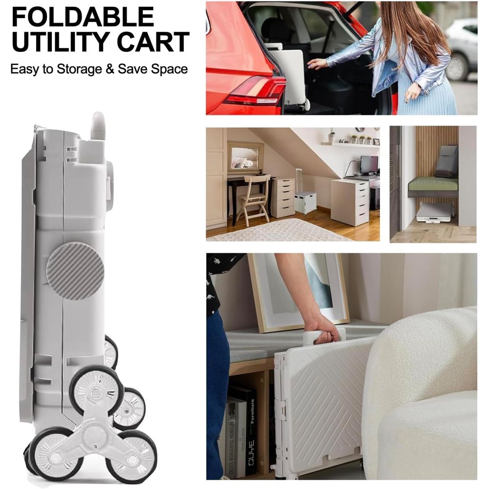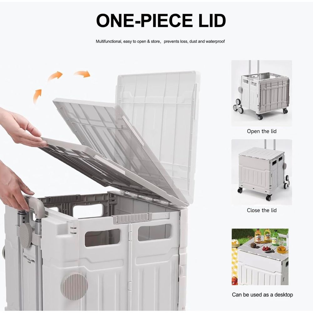Foldable Shopping Trolley Cart with 8 Wheels,Collapsible Grocery Trolley With Storage Box,Picnic Trolley With Integrated Desktoptop,Utility Shopping Cart for Outdoor Tourist Office(Grey)