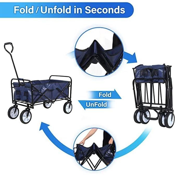 Garden Cart Folding Wagon Foldable Heavy Duty Outdoor Trolley Utility Transport Cart 80kg Max Load, for Outdoor/Festivals/Camping, Blue