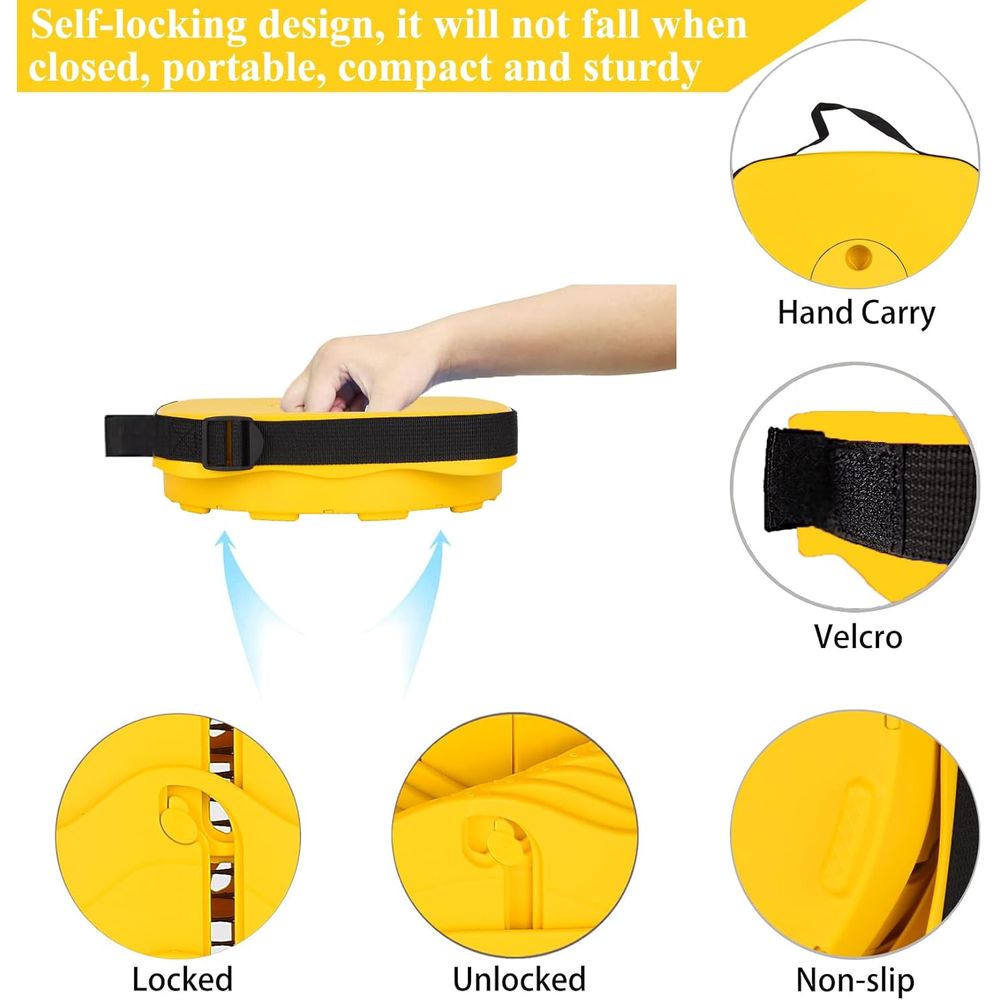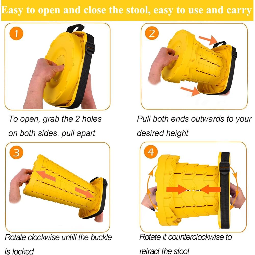 The product Upgraded Collapsible Stool for Adults,Portable Retractable Folding Telescoping Foldable Camping Stool Holds 400lbs for Outdoor Fishing Hiking Gardening Travel BBQ (square all yellow) images have props used for illustrative purposes. Product Color may vary slightly due to photographic lighting or your screen settings.