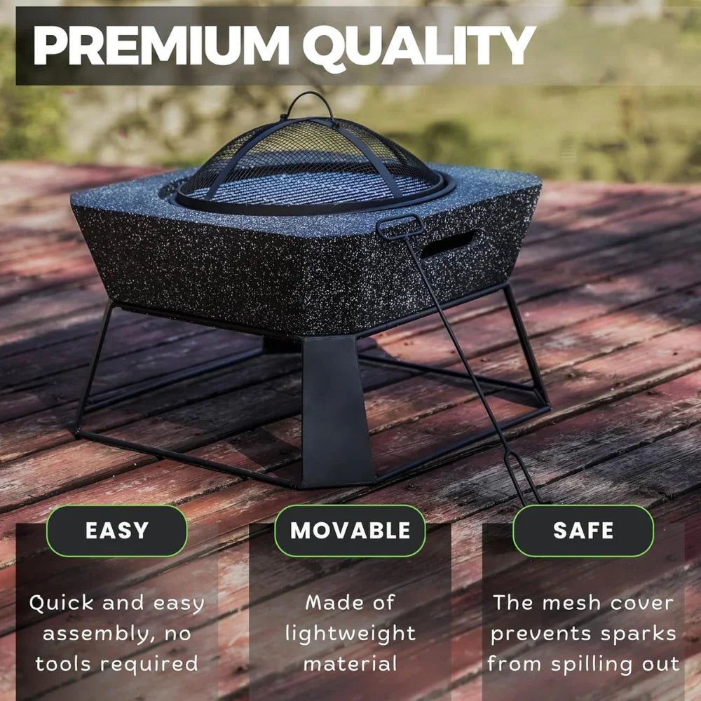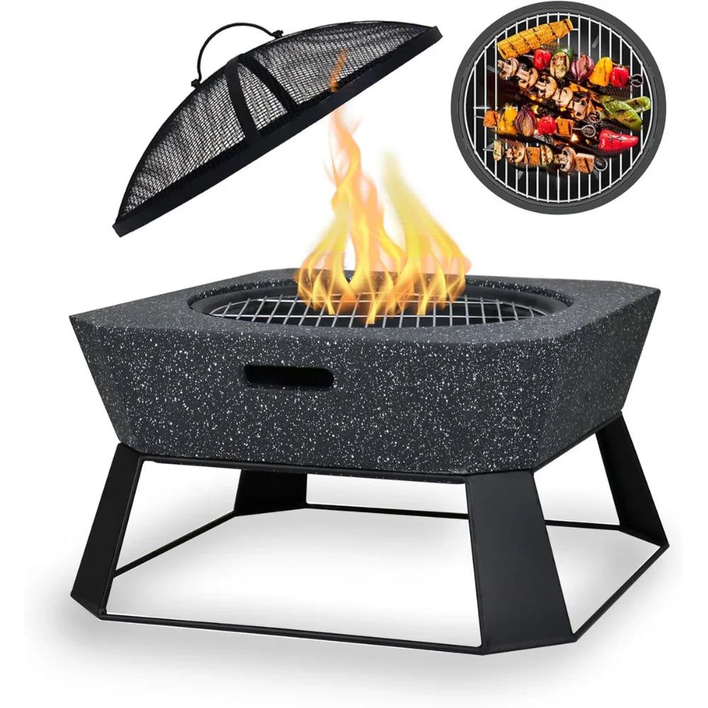 Fire Poker Square Outdoor Firepit MGO with BBQ Grill, Durable Charcoal or Wood-Burning for Backyard, Patio & Garden (Dark Grey)