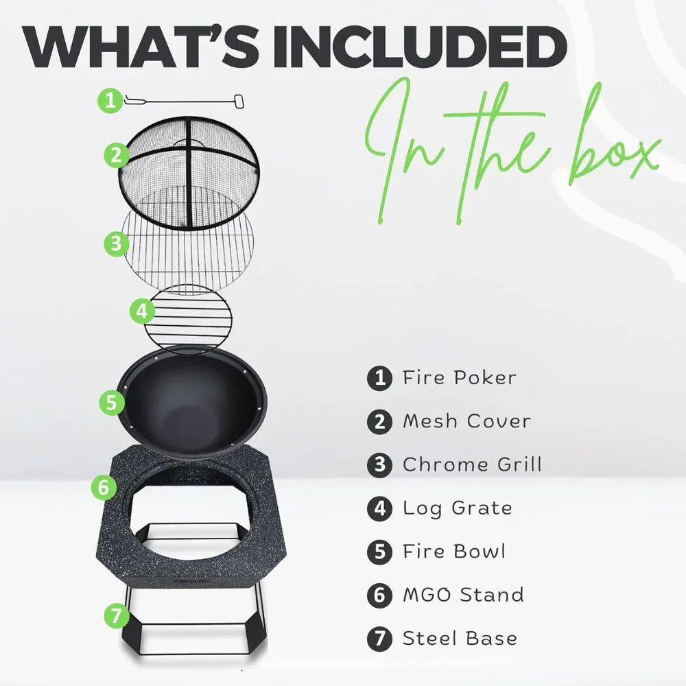 Elevate your outdoor gatherings with the Wooden Twist Ignix Square Outdoor Firepit MGO with BBQ Grill—a perfect blend of functionality, durability, and style