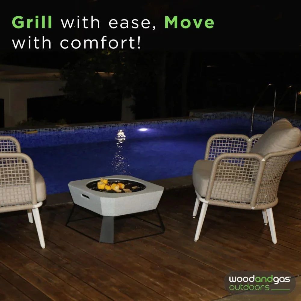 Elevate your outdoor gatherings with the Wooden Twist Ignix Square Outdoor Firepit MGO with BBQ Grill—a perfect blend of functionality, durability, and style