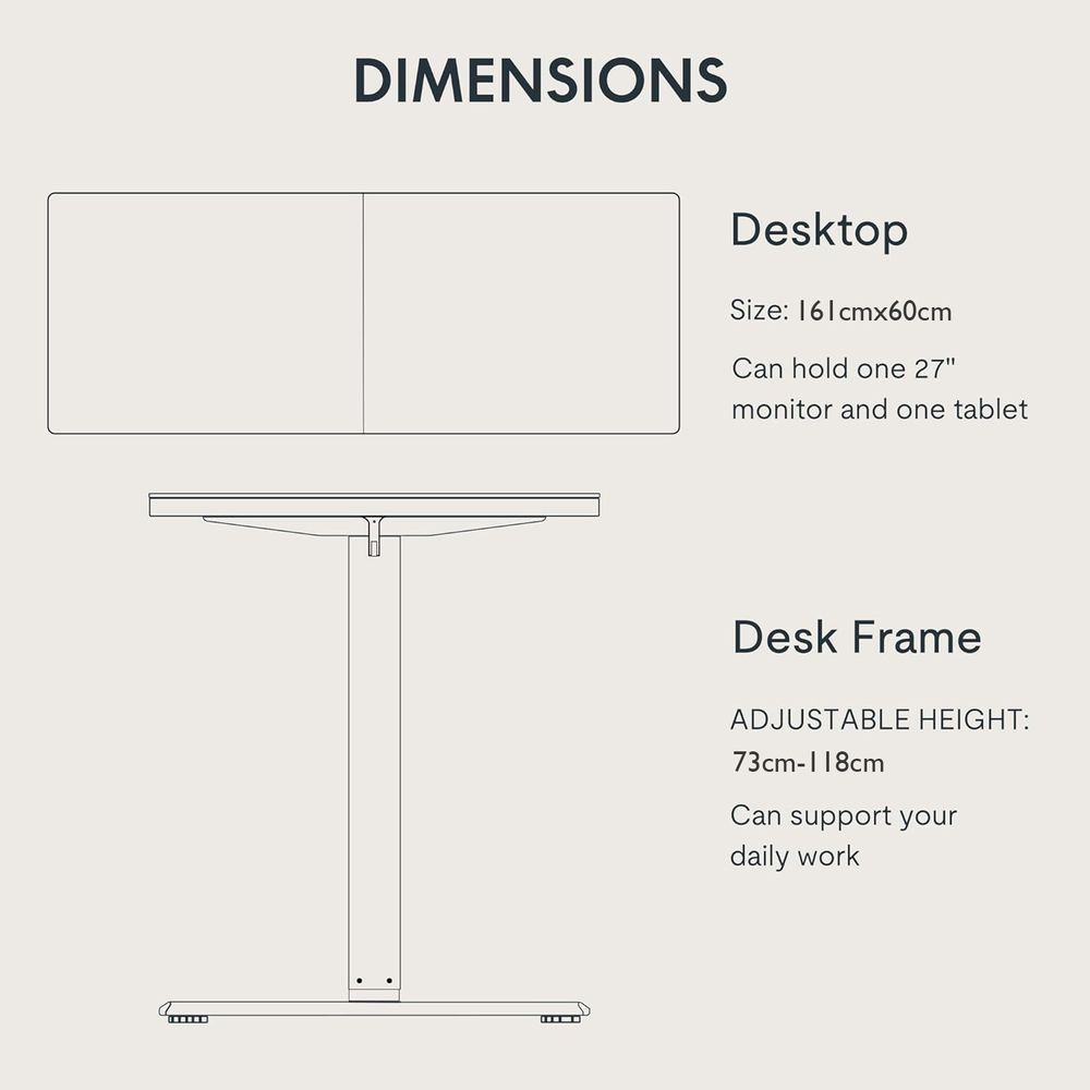 The FlexiSpot Electric Standing Desk is designed for comfort, efficiency, and productivity. This modern sit-stand workstation features a spacious 161x60cm desktop, providing a smooth and durable surface for daily use. The electric height adjustment system effortlessly transitions between 73.4 cm and 118.11 cm, allowing you to switch from sitting to standing with ease.