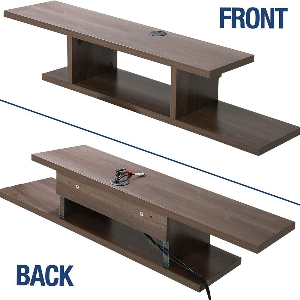 This wooden wall mounted shelf suitable DVD players, DVRs, HD recorders, Cable TV Boxes, AV components, gaming systems, for storage of CDs, DVDs and any other media