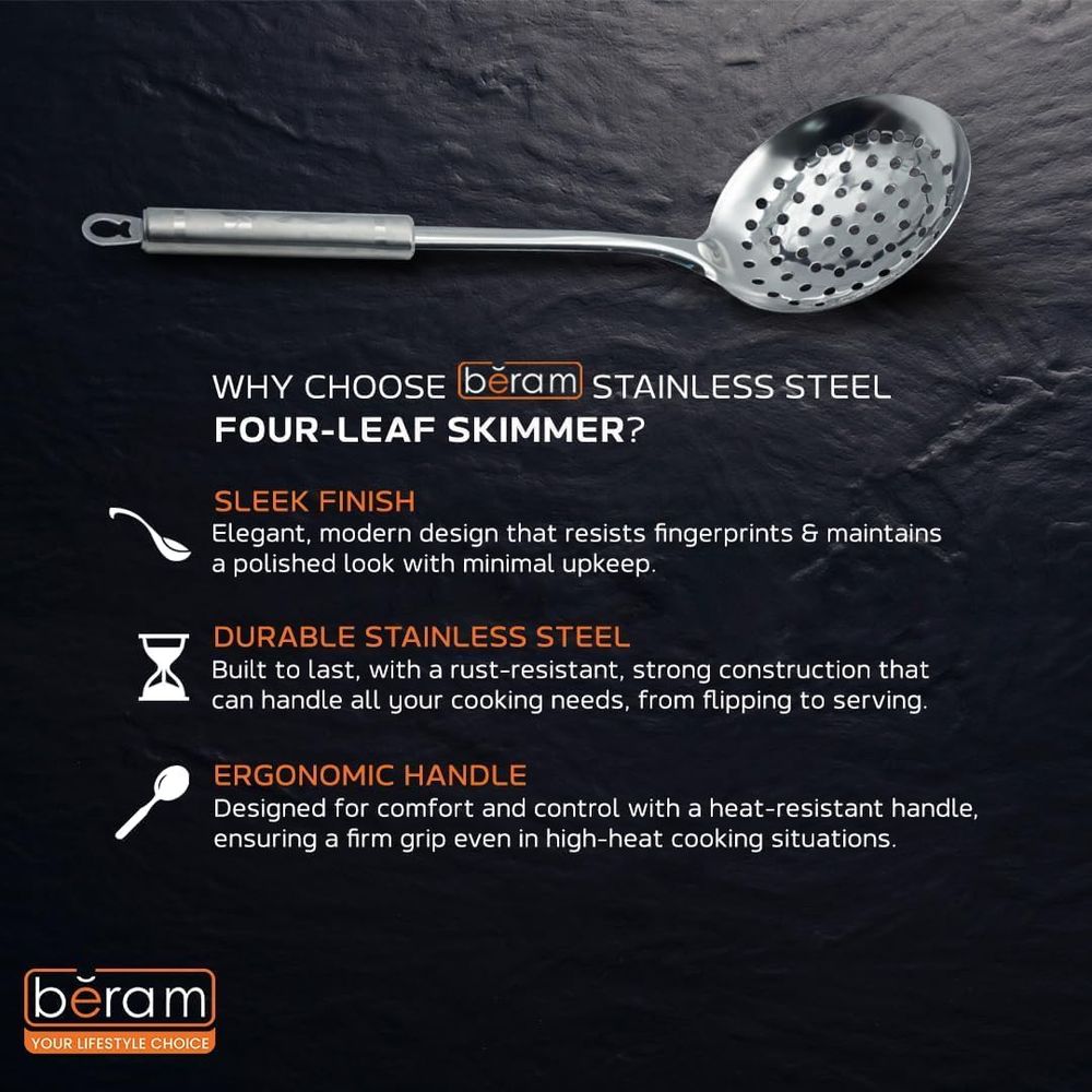 BERAM Skimmer Strainer Stainless Steel Elegant Four-Leaf Handle Design Cooking Utensils Kitchen Tool for Straining and Draining
