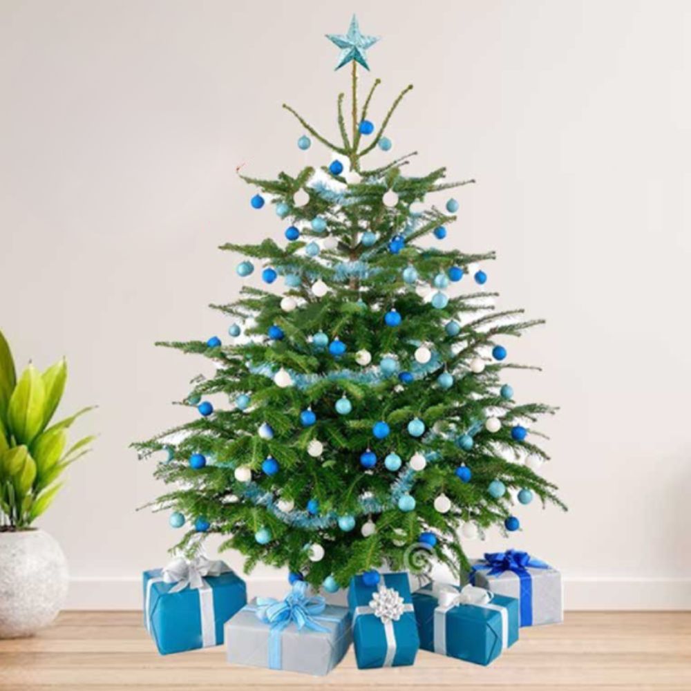 Fresh Premium Christmas Tree with Blue and Silver Decorations 150cm